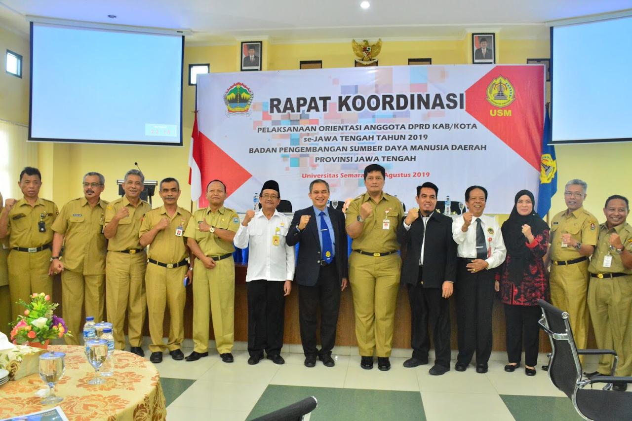Penandatanganan kerja sama dilakukan usai Rapat Koordinasi Pelaksanaan Orientasi Anggota DPRD Kabupaten/Kota se-Jateng Tahun 2019 oleh Badan Pengembangan Sumber Daya Manusia Daerah Provinsi Jawa Tengah di USM dan ikuti sekeretaris DPRD dari 35 Kab/Kota di Jawa Tengah.