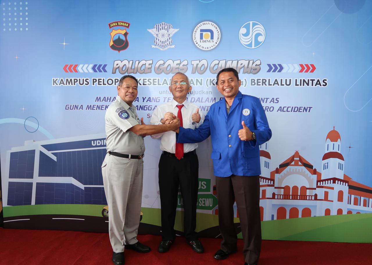 Hari ini (26/2) Universitas Dian Nuswantoro (Udinus) Semarang menggelar acara Police Goes To Campus bekerja sama dengan Polda Jateng, Ditlantas Polda Jateng, dan Jasa Raharja. Universitas Dian Nuswantoro Semarang dinobatkan sebagai Kampus Pelopor Keselamatan (Kapeka) Berlalu Lintas.