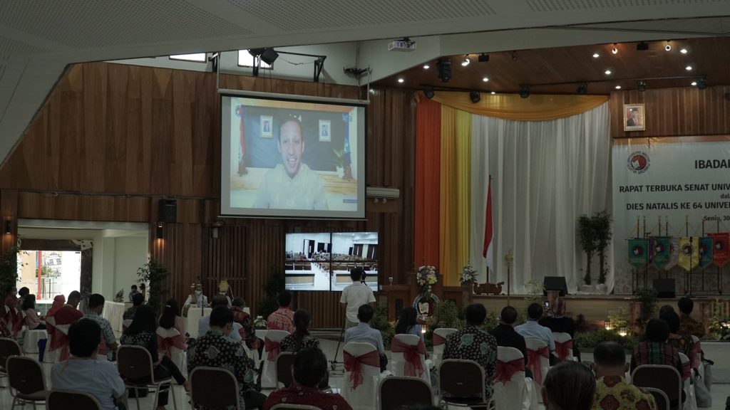 Turut memberikan apresiasi bagi Dies Natalis UKSW yakni Guberbur Jawa Tengah H Ganjar Pranowo SH MH, serta Plt. Kepala LLDIKTI Wilayah VI Jawa Tengah Dr Lukman ST MHum.