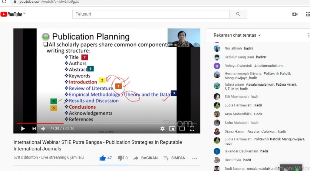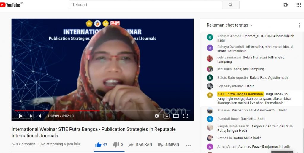 STIE Putra Bangsa bekerjasama dengan Universitas Jenderal Soedirman, dan Universiti Malaysia Sarawak menyelenggarakan Webinar Internasional dengan tema Publication Strategies in Reputable Internasional Journals pada Kamis (26/11).