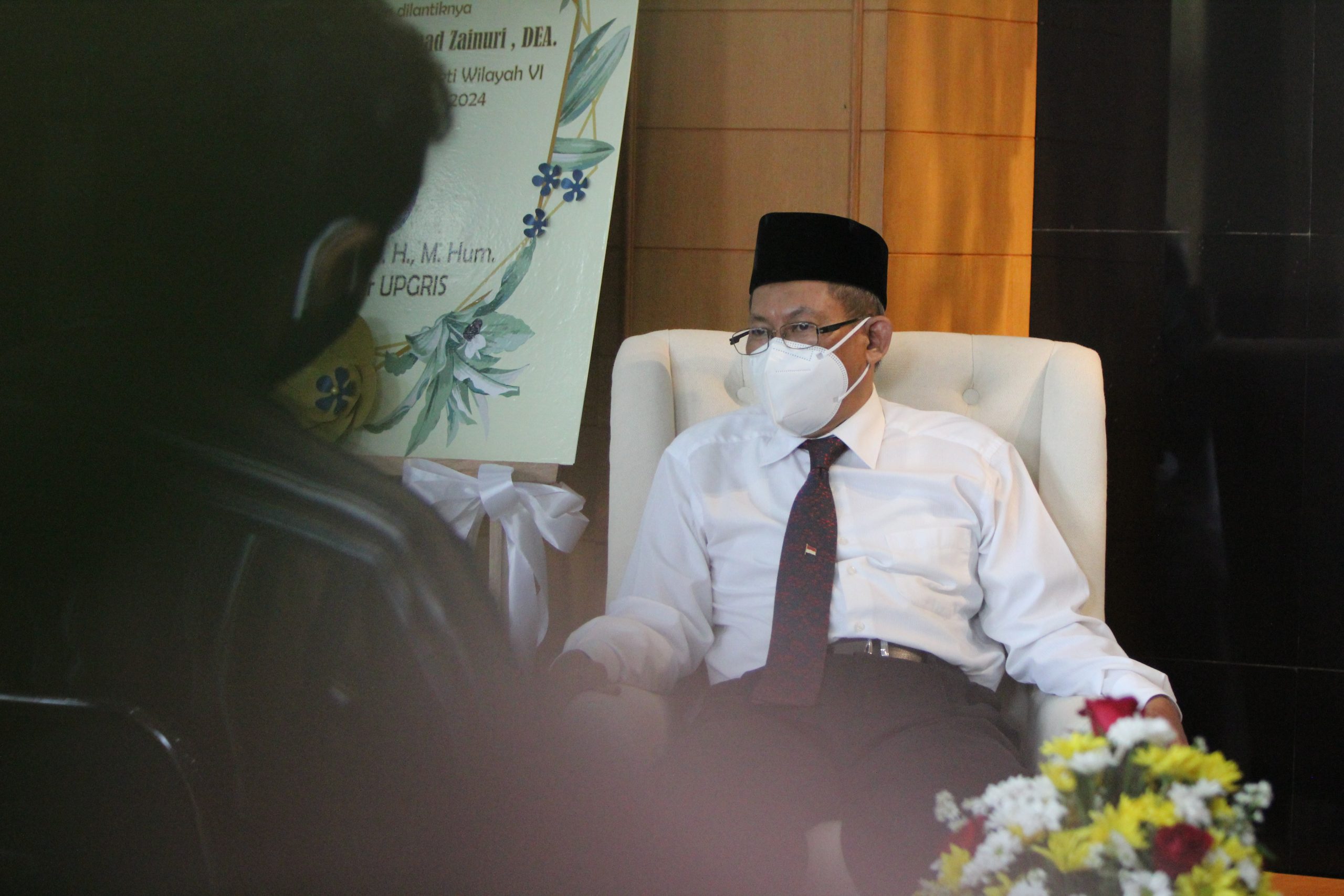 Sekretaris LLDIKTI Wilayah VI, Dr Lukman ST MHum dalam sambutan pembukaannya mengenalkan segenap sivitas LLDIKTI Wilayah VI kepada Pak Zain. Dr Lukman juga menjelaskan peta kondisi PTS yang ada di wilayah Jawa Tengah mulai dari akreditasi, SDM pendidik, hingga permasalahan-permasalahan yang menyangkut penelitian dan publikasi dosen.