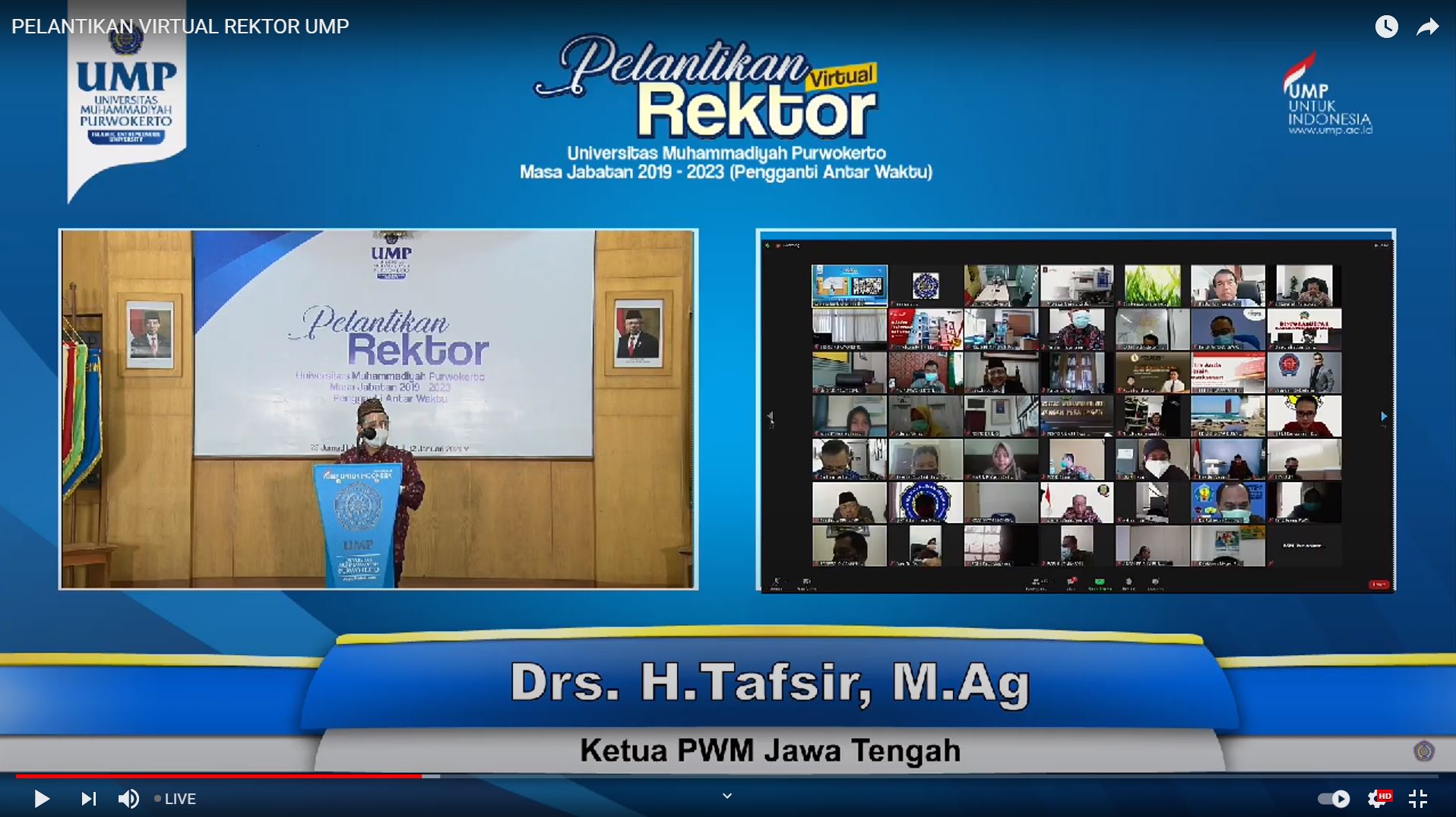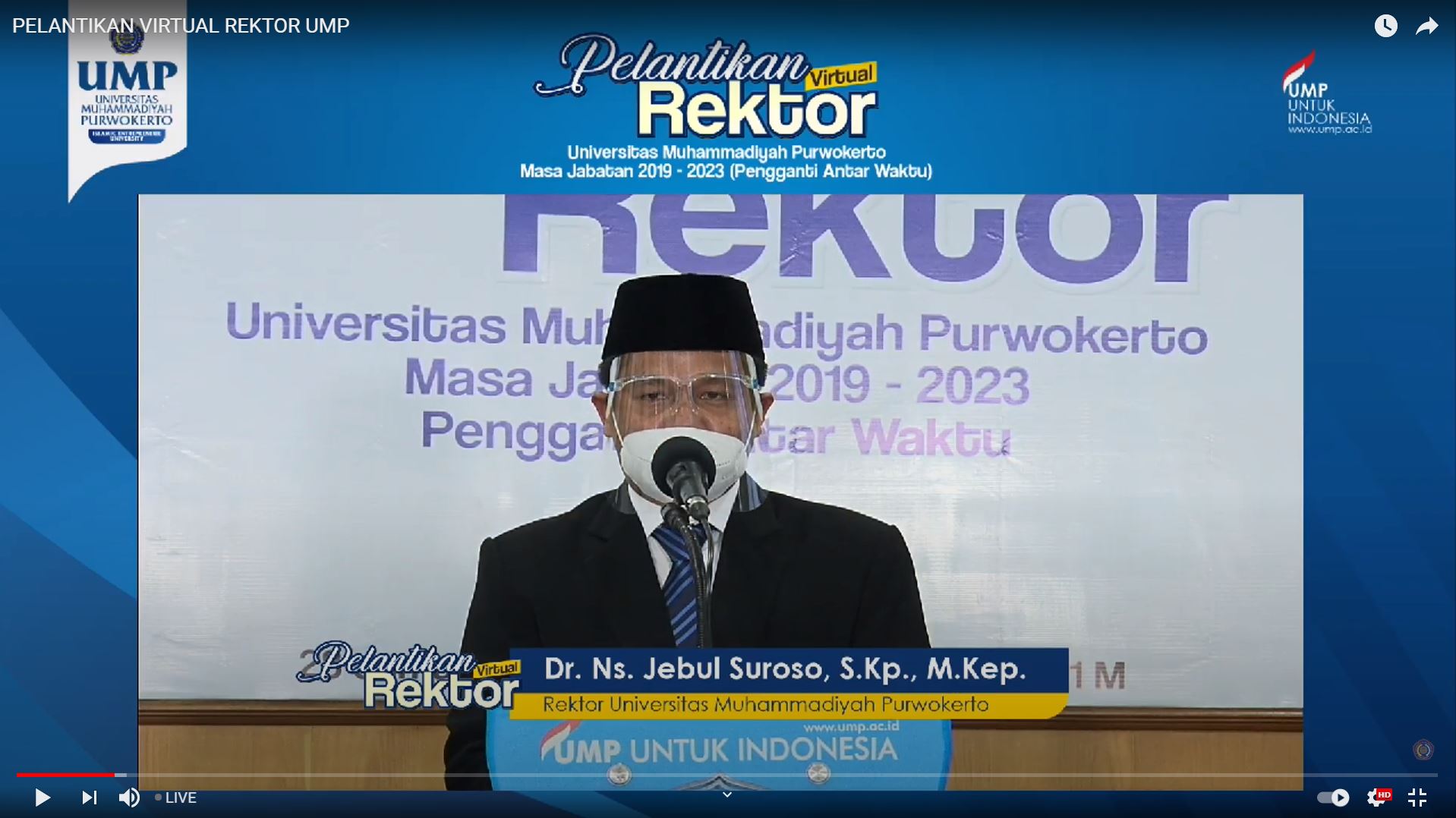 Dr Ns Jebul Suroso SKp MKep dilantik sebagai Rektor UMP pengganti antar waktu oleh Pimpinan Majelis Dikti Litbang Pusat Muhammadiyah Prof H Lincolin Arsyad MSi, menggantikan alm. Dr Anjar Nugroho MSi yang wafat bulan Desember 2020 yang lalu. Proses pelantikan tersebut dilaksanakan secara virtual dan disiarkan langsung di kanal YouTube UMP TV, serta akun instagram ump.ac.id. hal tersebut dikarenakan adanya pandemi Covid-19 yang belum memungkinkan melakukan kegiatan yang melibatkan khalayak ramai.