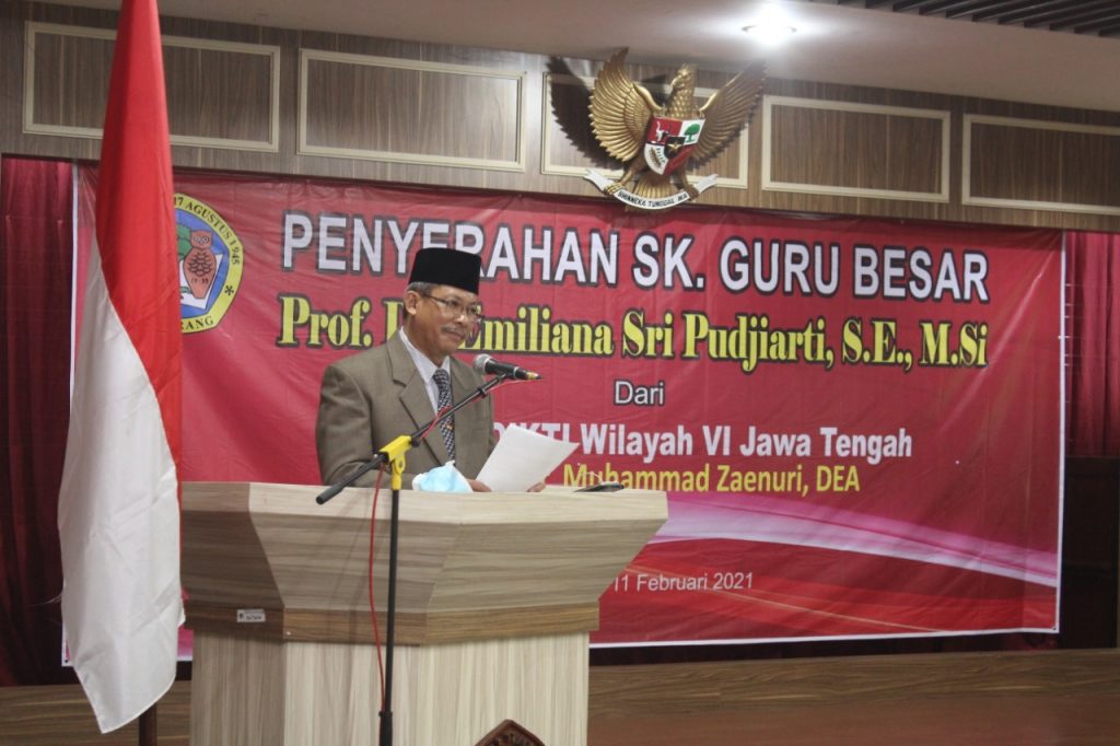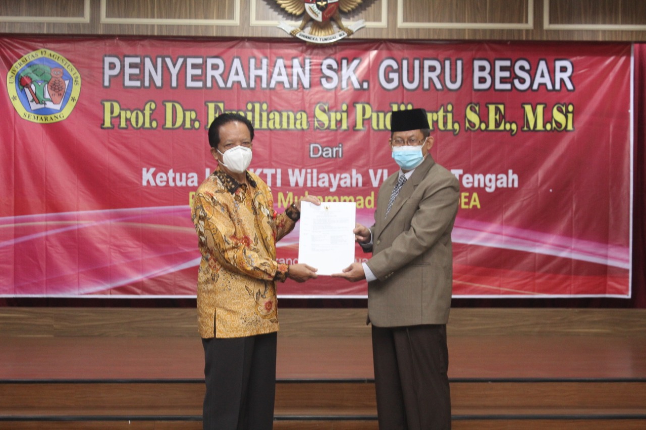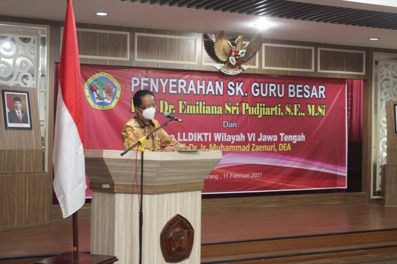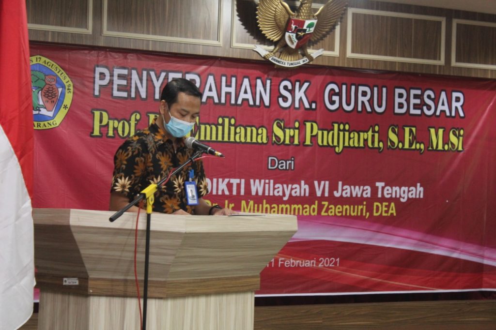 Hal tersebut disampaikan  saat menyerahkan Surat Keputusan Menteri Pendidikan dan Kebudayaan tentang kenaikan jabatan akademik Guru Besar dosen Universitas 17 Agustus 1945 (Untag) Semarang  atas nama Prof Dr Emiliana Sri Pudjiarti SE MSi pada Kamis (11/2) di Gedung Graha Kebangsaan dengan tetap menerapkan protokol kesehatan.