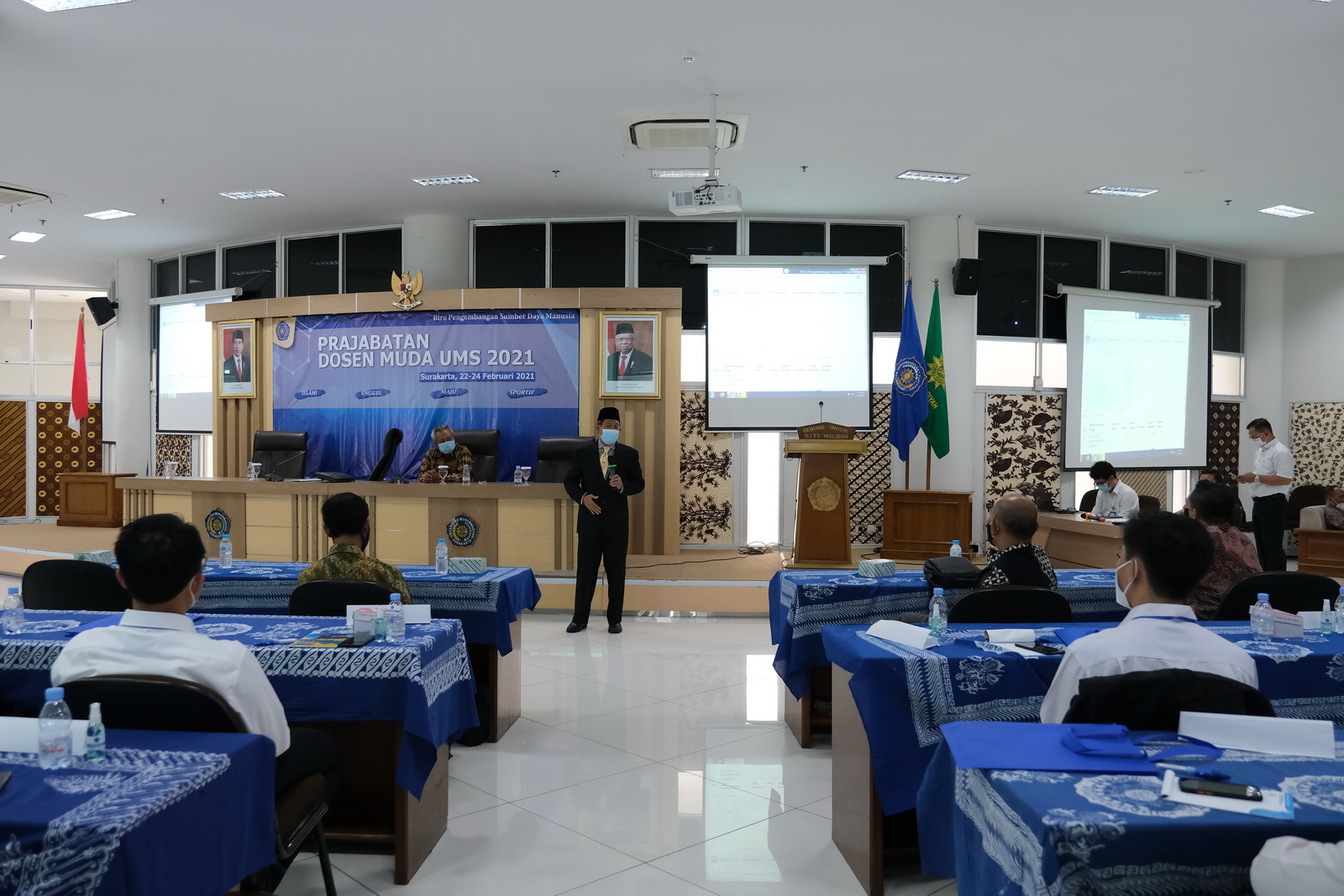 Prof Dr Ir Muhammad Zaenuri DEA menyampaikan pentingnya PDDIKTI untuk mewujudkan pendidikan tinggi yang bermutu secara realtime dalam kegiatan pembinaan prajabatan yang berlangsung secara luring di Gedung Induk Siti Walidah Universitas Muhammadiyah Surakarta (UMS), pada Senin (22/2).