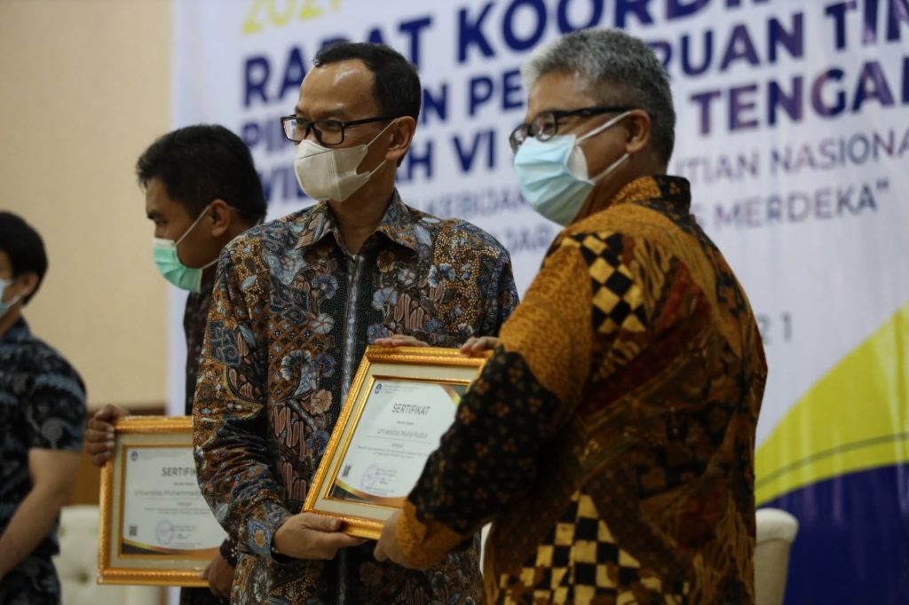 Penyerahan Anugrah Kepada Insitusi dengan Luaran Penelitian terproduktif Berdasarkan SINTA LLDIKTI Wilayah VI yang diraih oleh UMS
