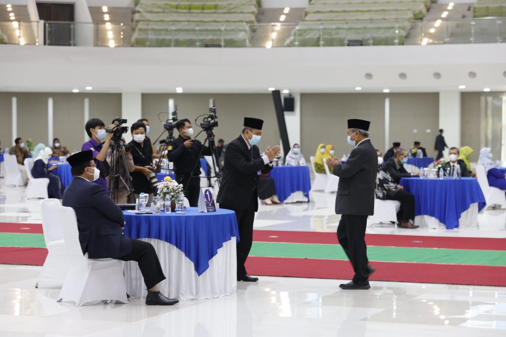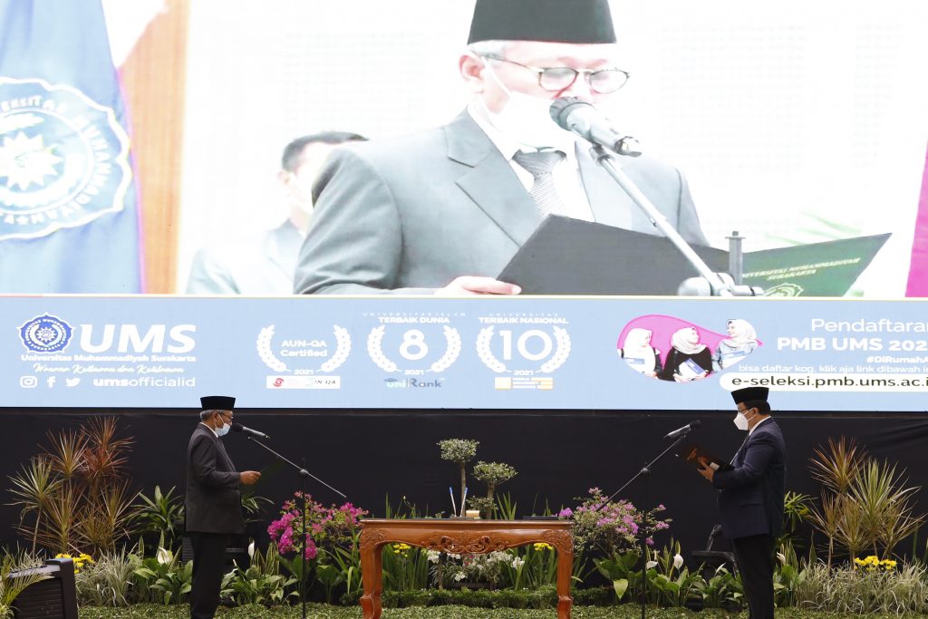 Kegiatan pelantikan yang menerapkan protokol kesehatan yang ketat ini turut dihadiri Ketua Umum Pimpinan pusat Muhammadiyah Prof Dr KH Haedar Nasir yang hadir secara daring, Ketua Majelis Dikti PP Muhammadiyah Prof Lincolin Arsyad, Forkopimda se karesidenan Surakarta, Rektor PTN dan PTS, Anggota Senat UMS.