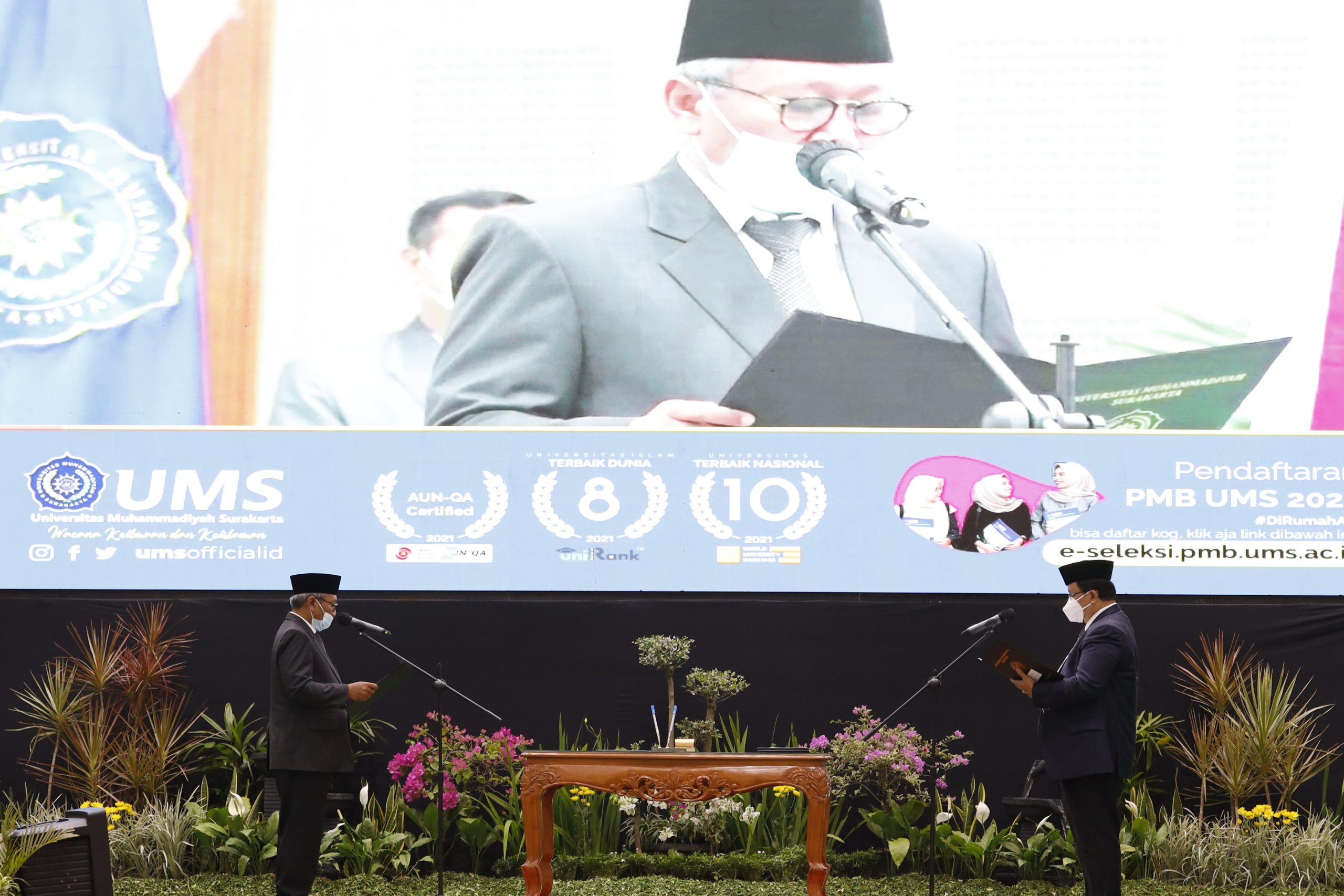 Kegiatan pelantikan yang menerapkan protokol kesehatan yang ketat ini turut dihadiri Ketua Umum Pimpinan pusat Muhammadiyah Prof Dr KH Haedar Nasir yang hadir secara daring, Ketua Majelis Dikti PP Muhammadiyah Prof Lincolin Arsyad, Forkopimda se karesidenan Surakarta, Rektor PTN dan PTS, Anggota Senat UMS.