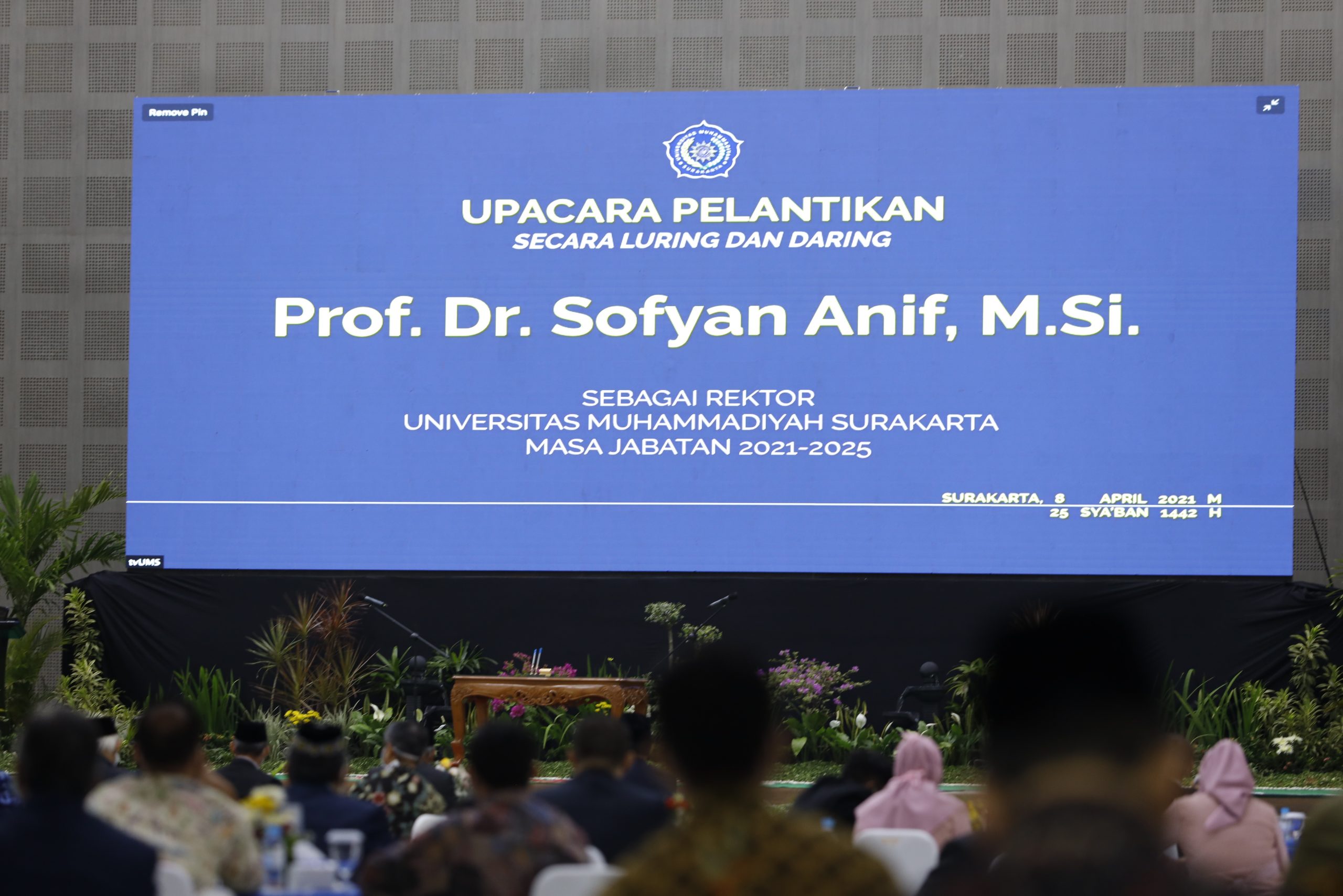 Prof Sofyan Anif dilantik secara resmi sebagai Rektor oleh Ketua Majelis Dikti PP Muhammadiyah, Prof Lincolin Arsyad. Jabatan sebagai Rektor UMS 2021-2025 ini merupakan jabatan periode kedua yang disandang oleh Prof Sofyan Anif.