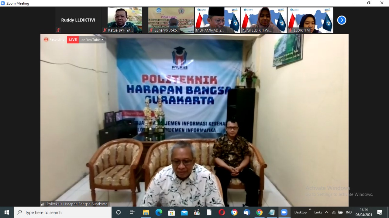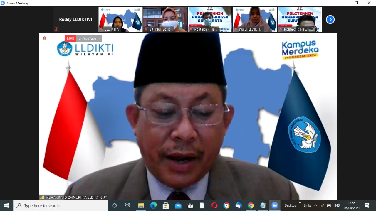 Kepala LLDIKTI Wilayah VI, Prof Dr Ir Muhammad Zainuri DEA pada Selasa (6/4) menyerahkan secara daring dua (2) salinan Keputusan Menteri Pendidikan dan Kebudayaan tentang penggabungan dan perubahan bentuk kepada Politeknik Harapan Bangsa Surakarta dan Politeknik Insan Husada Surakarta.
