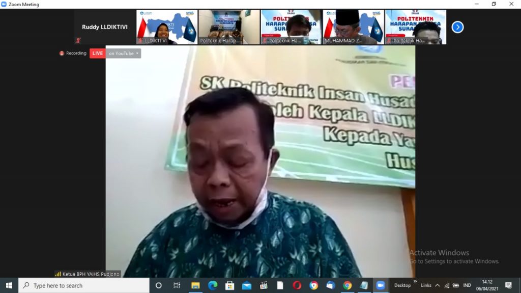 Prof Zain berharap pada bulan Januari 2022 sebagaimana butir c diktum ke 5, baik Politeknik Harapan Bangsa maupun Politeknik Insan Husada dapat melaporkan hasil penyelenggaraan program studi paling lambat 1 bulan setelah akhir setiap semester kepada menteri.