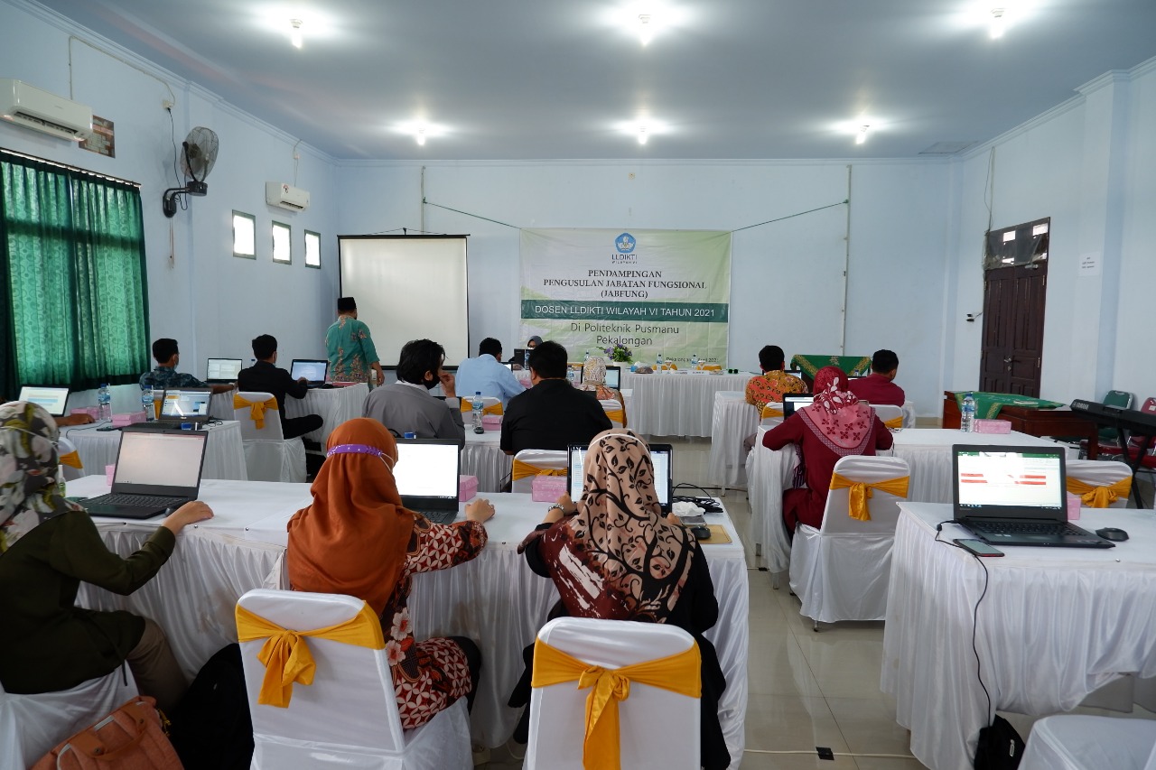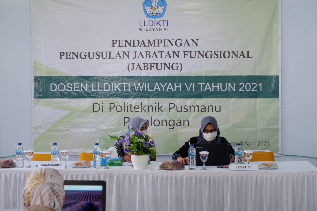Setelah melakukan kegiatan pendampingan usulan penilaian Jabatan Fungsional Akademik Dosen (JAFA) di STIE Widya Manggalia Brebes, Tim SIJAGO On Site Lembaga Layanan Pendidikan Tinggi (LLDIKTI) Wilayah VI kembali melakukan kegiatan pendampingan usulan penilaian JAFA di Politeknik Pusmanu Pekalongan, belum lama ini.