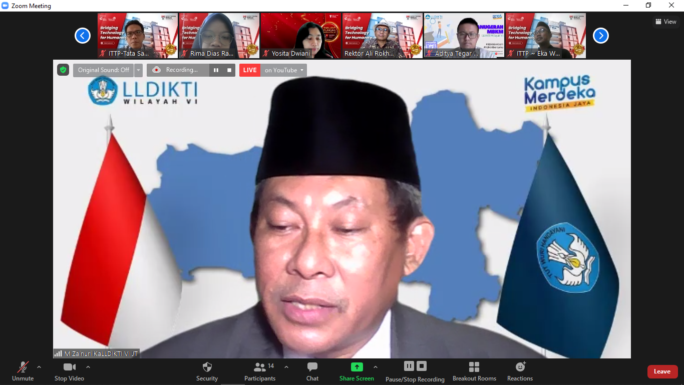 Prof Zain secara resmi menyerahkan Salinan Keputusan Menteri Pendidikan, Kebudayaan, Riset, dan Teknologi Republik Indonesia Nomor 241/E/0/2021 tentang Izin Pembukaan Program Studi Bisnis Digital Program Sarjana dan Program Studi Desain Produk Program Sarjana pada Institut Teknologi Telkom Purwokerto di Kabupaten Banyumas yang Diselenggarakan oleh Yayasan Pendidikan Telkom, dan diterima oleh Rektor IT Telkom, Dr Ali Rokhman, didampingi para Wakil Rektor, dan Dekan.