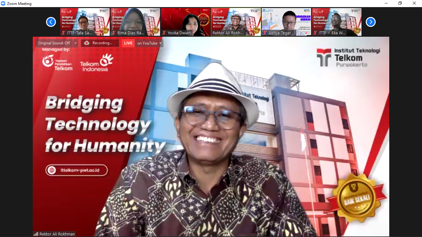Rektor IT Telkom Purwokerto, Dr Ali Rokhman menyatakan ucapan syukurnya atas penyerahan izin pembukaan Prodi yang baru seraya berharap dapat menjadi keberkahan bauta semua. “ Marilah kita panjatkan puji syukur ke hadirat Allah SWT, kita dapat berkumpul secara daring, mudah-mudahan yang kita lakukan menjadi barokah buat kita semua,” ujarnya.