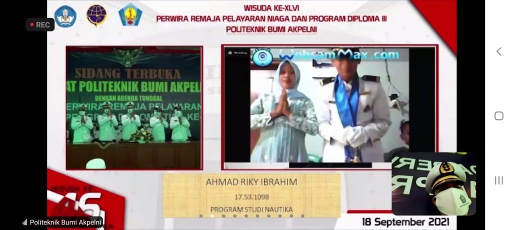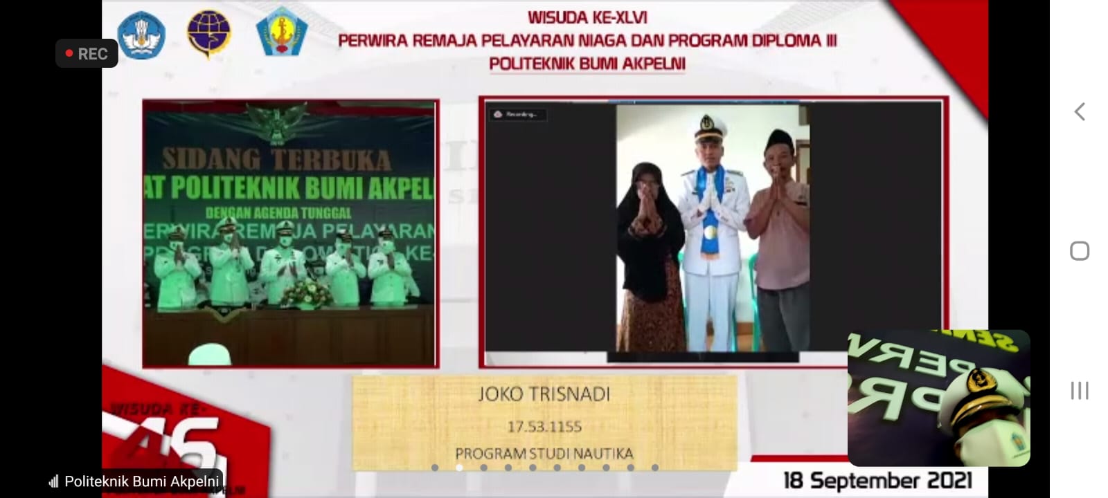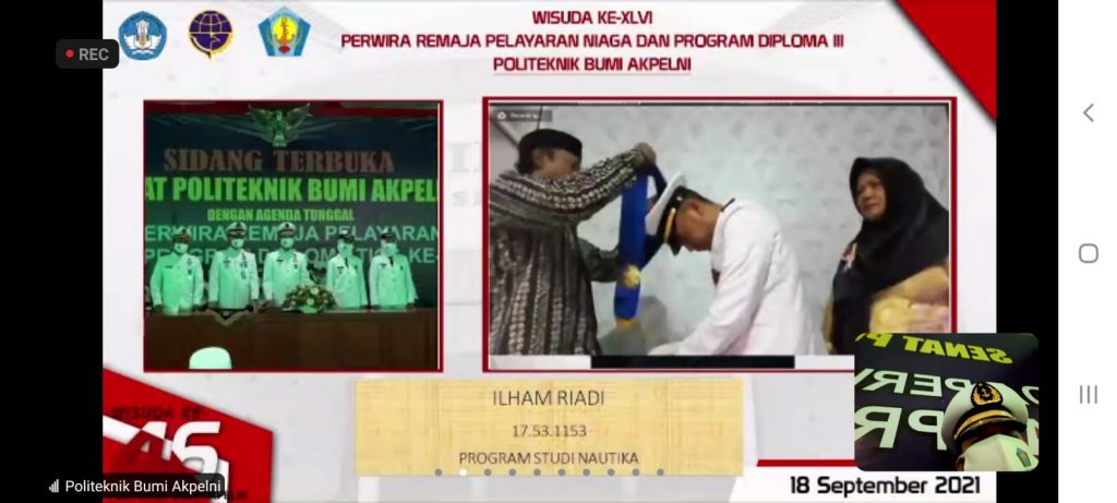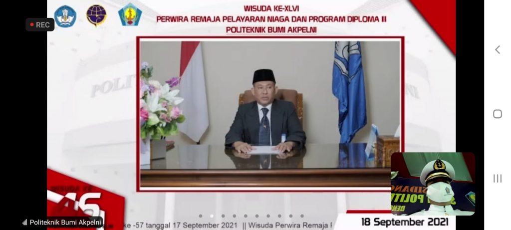 “Politeknik Bumi Akpelni telah melaksanakan proses pembelajaran, pencapaian kompetensi dan profesionalitas bagi para lulusannya” ujar Kepala Lembaga Layanan Pendidikan Tinggi Wilayah VI Jawa Tengah Prof Dr Ir Muhammad Zainuri DEA dalam sambutannya pada acara Wisuda Perwira Remaja Pelayaran Niaga dan Program Diploma Tiga Ke – 46 Politeknik Bumi Akpelni pada Sabtu (18/9). Selanjutnya Prof Zain berharap kompetensi dan profesionalitas yang telah diraih dapat menjadi bekal untuk masa depan yang lebih cerah. Tema wisuda kali ini adalah “Politeknik Bumi Akpelni Siap Mencetak Sumber Daya Manusia Berdaya Saing Unggul melalui Kebijakan Merdeka Belajar Kampus Merdeka”. Acara ini dilaksanakan dengan metode hybrid yaitu secara tatap muka di kampus bagi wisudawan terbaik yang terdiri dari Muqtadir Anam (Prodi Nautika), Muhammad Khanif Hibattullah (Prodi Teknika) dan Muhammad Sonica Fortune (Prodi Ketatalaksanaan Pelayaran Niaga dan Kepelabuhan) dan wisudawan yang lain secara online di kediaman masing – masing melalui aplikasi zoom.