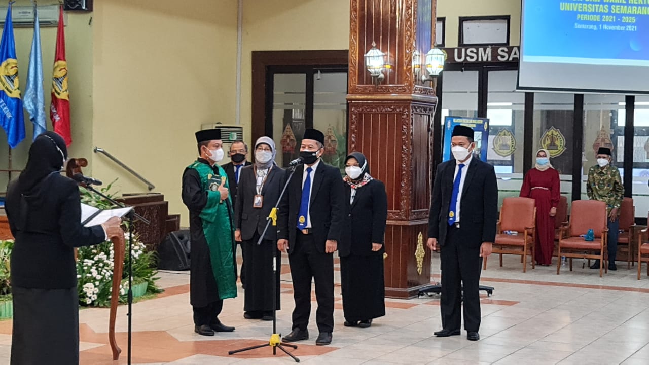 Dr Supari ST MT secara resmi dilantik menjadi Rektor Universitas Semarang (USM) periode 2021-2025, di Auditorium USM Jl Soekarno-Hatta Semarang, Senin (1/11).
