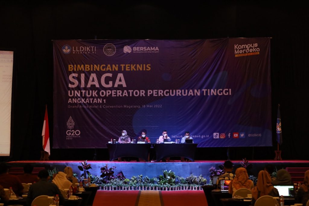 Untuk memberikan fasilitasi kepada Perguruan Tinggi dalam memanfaatkan SIAGA, Lembaga Layanan Pendidikan Tinggi (LLDIKTI) Wilayah VI menyelenggarakan Bimbingan Teknis SIAGA untuk Operator Perguruan Tinggi Angkatan I yang diselenggarakan di Grand Artos, Magelang, Rabu (18/05).