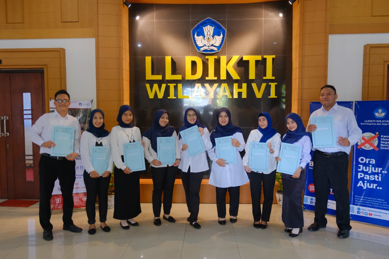 Penyerahan SK dilakukan oleh Kepala LLDIKTI Wilayah VI, Bhimo Widyo Andoko SH MH didampingi oleh Kepala Bagian Umum, Adhrial Refaddin SIP MPP, disaksikan oleh segenap Brayat Agung LLDIKTI Wilayah VI.