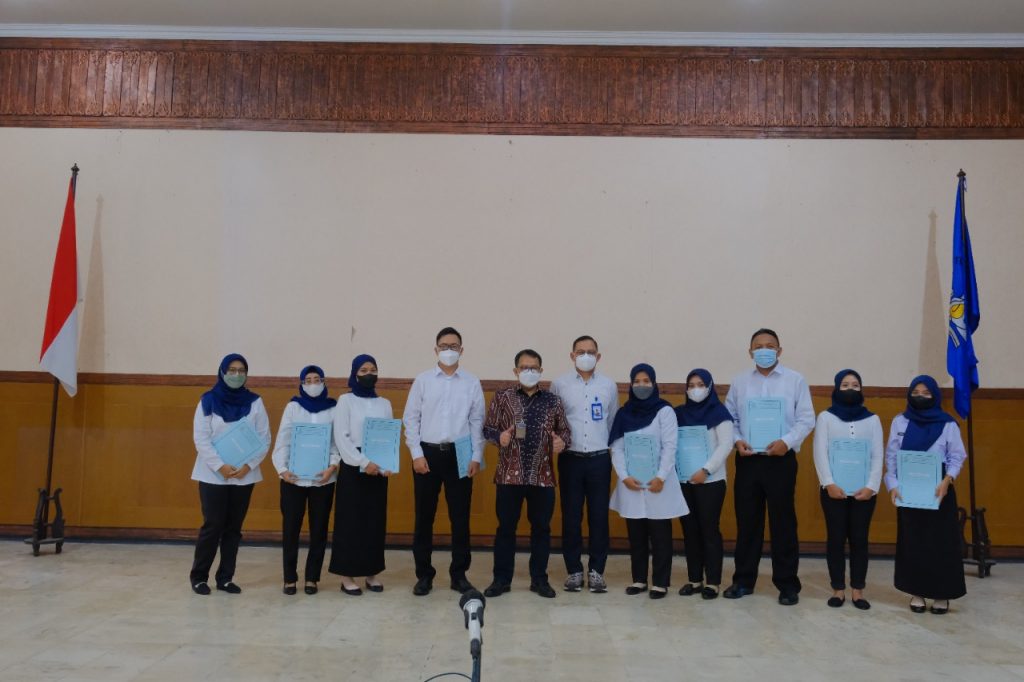 Sebanyak sembilan (9) orang Tenaga Kependidikan (tendik) Lembaga Layanan Pendidikan Tinggi (LLDIKTI) Wilayah VI resmi menerima Surat Keputusan (SK) Calon Pegawai Negeri Sipil (CPNS), di Gedung B Kantor LLDIKTI Wilayah VI, pada Senin (30/05). Penyerahan SK CPNS kepada sembilan tendik CPNS, yang dinyatakan lulus pada LLDIKTI Wilayah VI Formasi Tahun 2021.