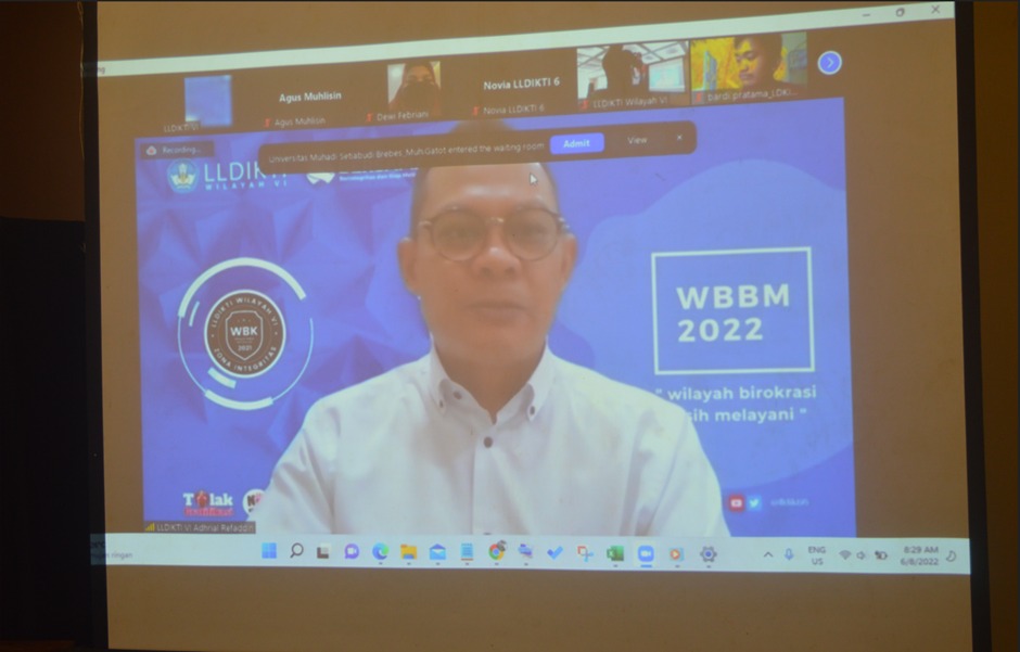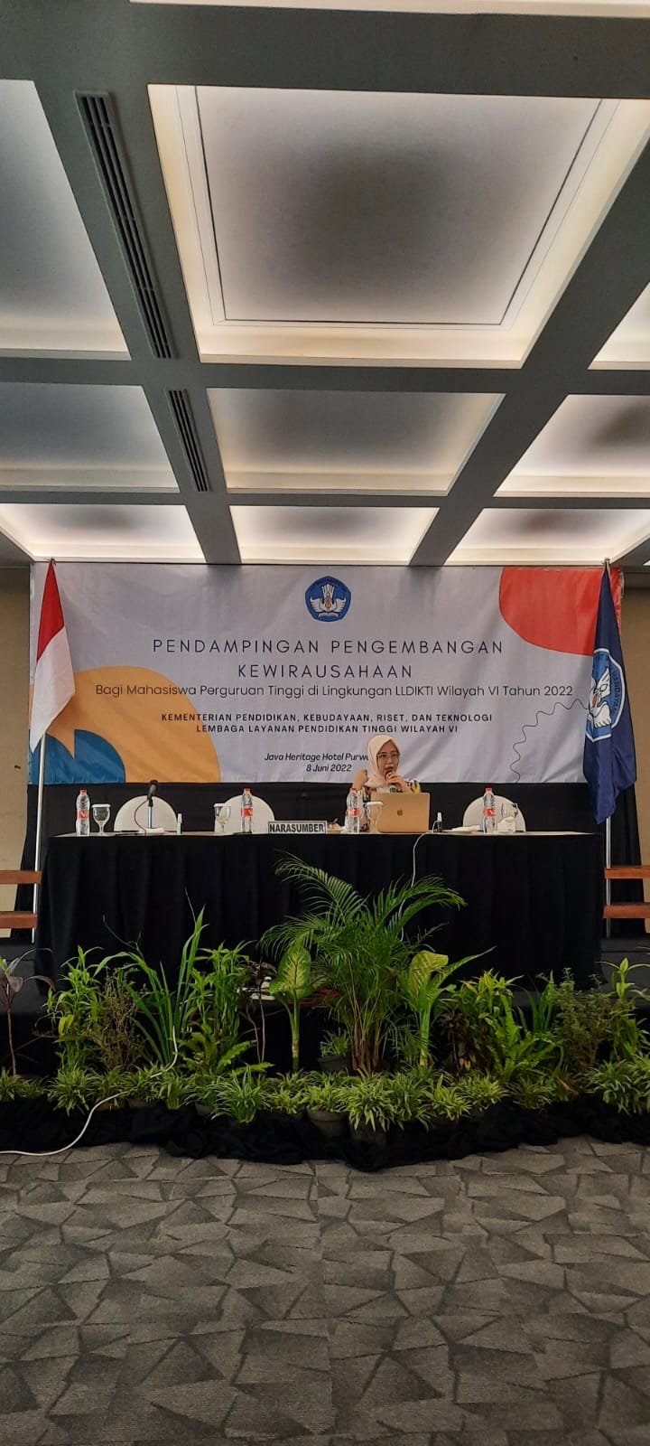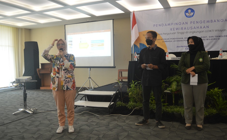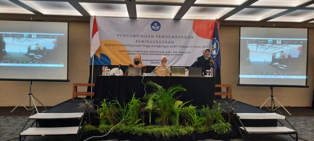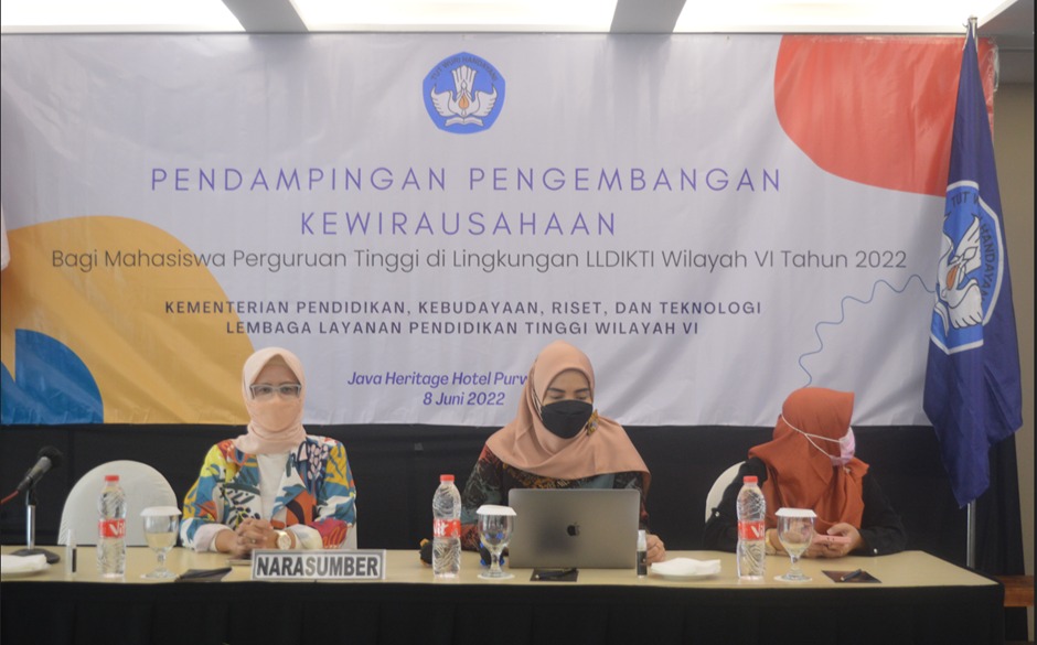 Lembaga Layanan Pendidikan Tinggi (LLDIKTI) Wilayah VI, pagi ini (08/06) menyelenggarakan Pendampingan Pengembangan Kewirausahaan Bagi Mahasiswa Perguruan Tinggi yang ada di wilayah Jawa Tengah. Kegiatan ini dilaksanakan secara hybrid, 42 peserta dari 22 Perguruan Tinggi Swasta (PTS) hadir secara luring di Java Heritage Hotel Purwokerto, dan 162 peserta dari 48 PTS hadir secara daring.