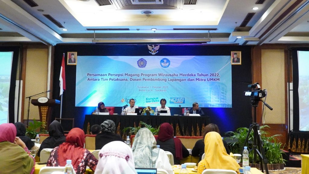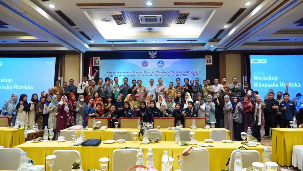 SOLO – Sekitar 150 peserta gabungan dari Dosen Pembimbing Lapangan (DPL), mitra UMKM, dan juga Tim Pelaksana mengikuti workshop Kegiatan Koordinasi DPL dan Mitra Program Wirausaha Merdeka Tahun 2022, yang diselenggarakan oleh Universitas Muhammadiyah Surakarta (UMS). Kegiatan ini berlangsung di Ballroom Puri Kencono, Lor In Hotel, Sabtu (01/10).