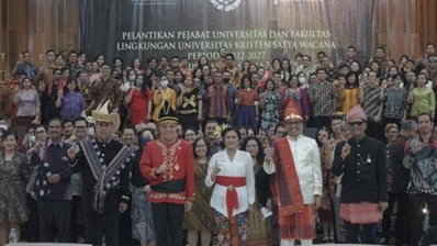 Dalam kesempatan itu, Rektor UKSW Prof. Dr. Intiyas Utami, S.E., M.Si., Ak., juga mengajak semua pejabat universitas dan fakultas yang dilantik untuk bangga dan bermegah dalam Tuhan untuk menyalurkan kehendak Tuhan melalui pelayanan di kampus ini dengan mengangkat tema Progressive to Outstanding atau PROUD.