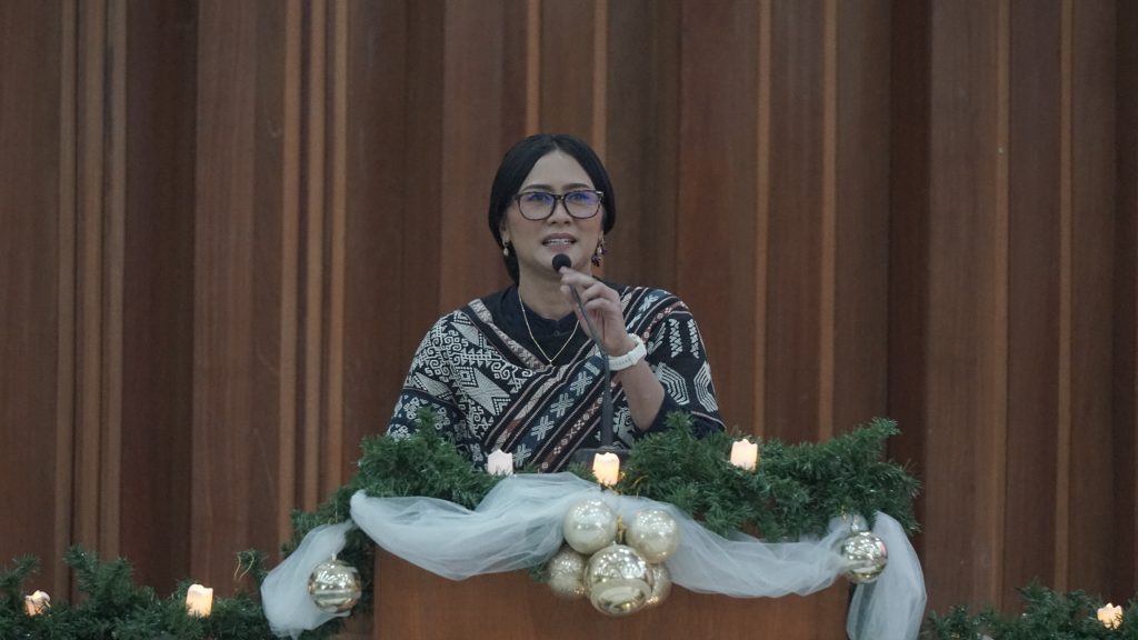 “Mari kita jaga nilai-nilai integritas, kampus ini harus menjadi kampus yang menjadi citra kehadiran Kristus, bebas dari kekerasan dan pelecehan seksual, bebas dari rasa keterhimpitan bebas dari rasa kebencian. Kita adalah kampus yang penuh cinta kasih. Jangan ragukan Satya Wacana dihati kita, maka kita akan bawa UKSW juga berseru di Indonesia kita penjaga pilar kesatuan Indonesia. Kami mohon doa restu, semoga natal yang damai ini akan membawa kapal kita, perjalanan dari hari ke hari bulan demi tahun ke sampai kiranya kita mempertanggungjawaban apa yang kita lakukan untuk Tuhan melalui UKSW. Selamat Natal, kiranya Tuhan hadir dan menaungi hati kita. Salam satu hati,” kata Rektor UKSW Prof. Dr. Intiyas Utami, S.E., M.Si., Ak.