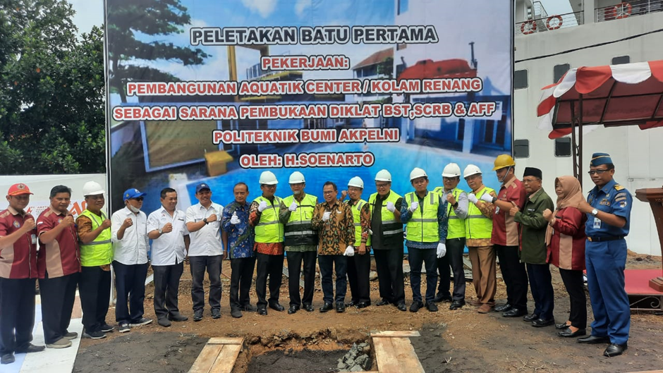 Salah satu upaya yang dilakukan oleh Politeknik Bumi Akpelni untuk meningkatkan kualitas lulusannya adalah dengan melengkapi sarana dan prasarana pendidikan, salah satunya adalah fasilitas kolam renang. Oleh karena itu, Yayasan Wiyata Dharma selaku badan penyelenggara penddikan Politeknik Bumi Akpelni dan SMK Pelayaran “Akpelni” melaksanakan acara peletakan batu pertama pembangunan kolam renang “Aquatic Centre” di kampus Politeknik Bumi Akpelni, Jl. Pawiyatan Luhur II No.17 Bendan Dhuwur – Semarang (5/1). Peletakan batu pertama dilakukan langsung oleh Ketua Dewan Pembina Yayasan Wiyata Dharma, H. Soenarto dilanjutkan oleh Senior Executive Vice President Commercial Banking PT. Bank Mandiri (Persero) Tbk., Totok Priyambodo yang didampingi Senior Vice President Commercial Banking Directorate, Ferdianto Munir dan Assistant Vice President, Anjar Yudhapranoto Tresnadharana. Turut hadir pula Regional CEO Senior Vice President Region VII/ Jawa 2, Hendra Wahyudi, SME Head Region VII/ Jawa 2, Gunadi Wono, Vice President Region VII/ Jawa 2, Wahyu Surahmat, Kepala LLDIKTI Wilayah VI Jawa Tengah Bhimo Widyo Andoko, S.H., M.H., Direktur Politeknik Bumi Akpelni Capt. Cahya Fajar Budi Hartanto, M.Mar., M.Si dan perwakilan dari perusahaan pelayaran PT Gurita Lintas Samudera Rachman Arziandi.