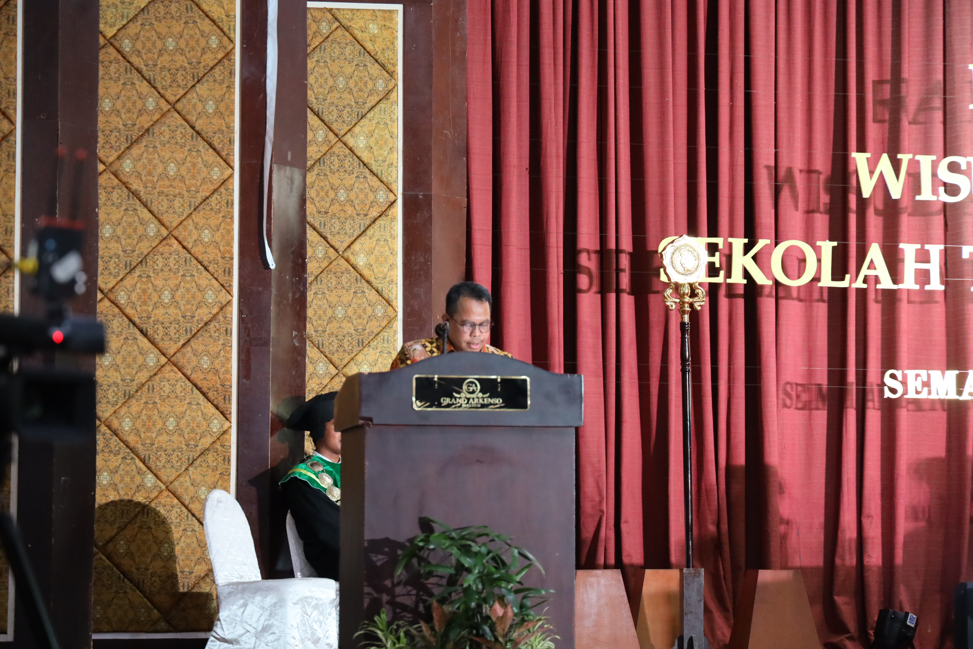 Kepala LLDIKTI Wilayah VI, Bhimo Widyo Andoko, S.H., M.H., menuturkan dalam sambutannya bahwa saat ini kemajuan teknologi sangat pesat, dimana para wisudawan harus bisa menyesuaikan dan menggunakannya dengan baik dan benar mulai dari informasi digital untuk membangun jiwa yang proaktif dan inovatif, dalam mewujudkan impian. “Sebagai seorang sarjana harus bisa memberikan contoh yang baik dalam masyarakat, dan pandailah menempatkan diri karena akan banyak tipe-tipe orang dalam masyarakat nantinya.” tutur Kepala LLDIKTI.