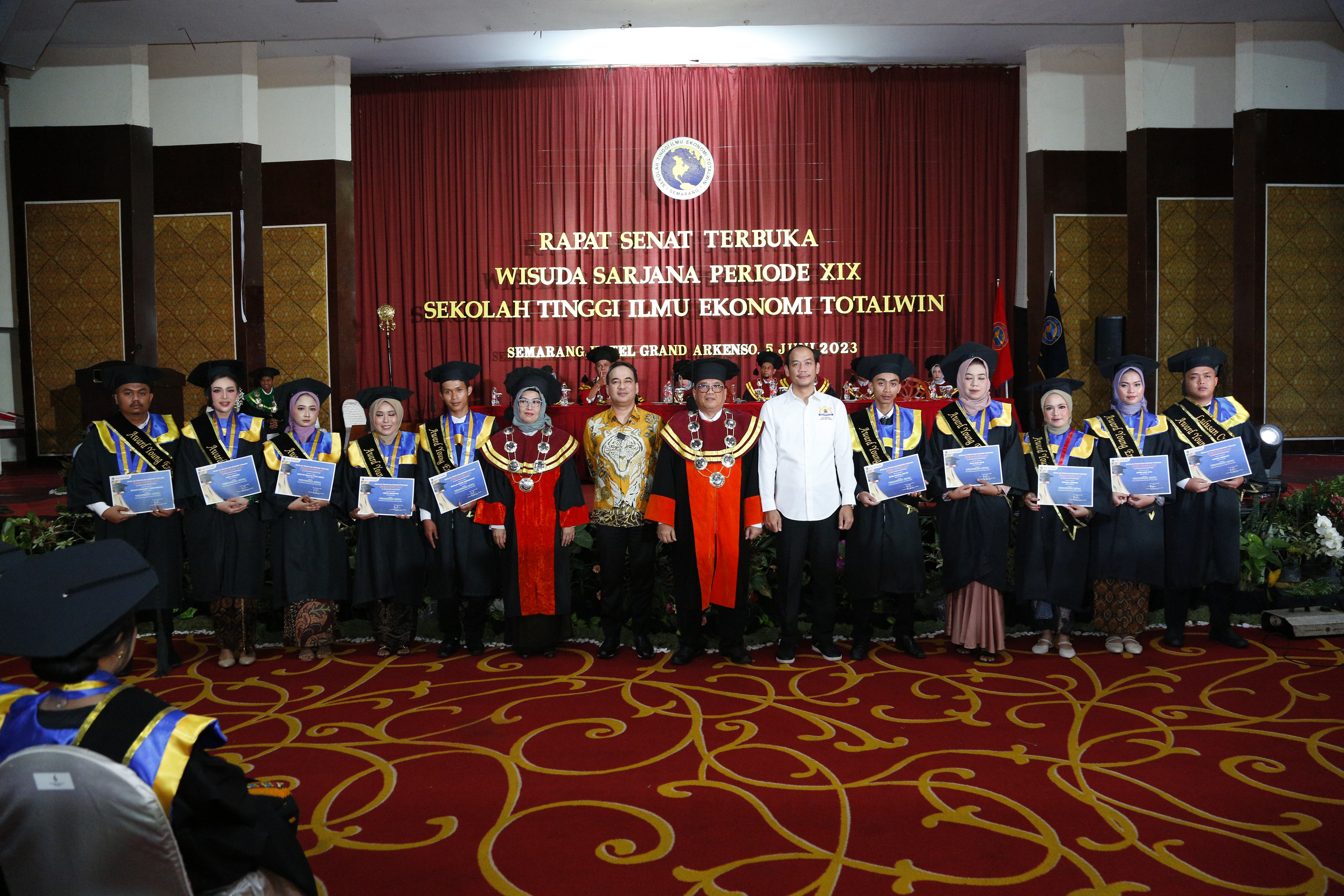 SEMARANG – Sebanyak 198 Wisudawan resmi lulus sebagai alumni STIE Totalwin dan siap untuk terjun di masyarakat luas. Terdiri dari 175 Wisudawan dari Program Studi S1 Manajemen dan 23 Wisudawan dari Program Studi S1 Akuntansi. Dan dari 198 Wisudawan ini terdapat 10 Wisudawan yang sudah menjadi Entrepreneur dan memiliki Usaha, diantaranya memiliki omset yang cukup gemilang dari ratusan ribu hingga ratusan juta rupiah.