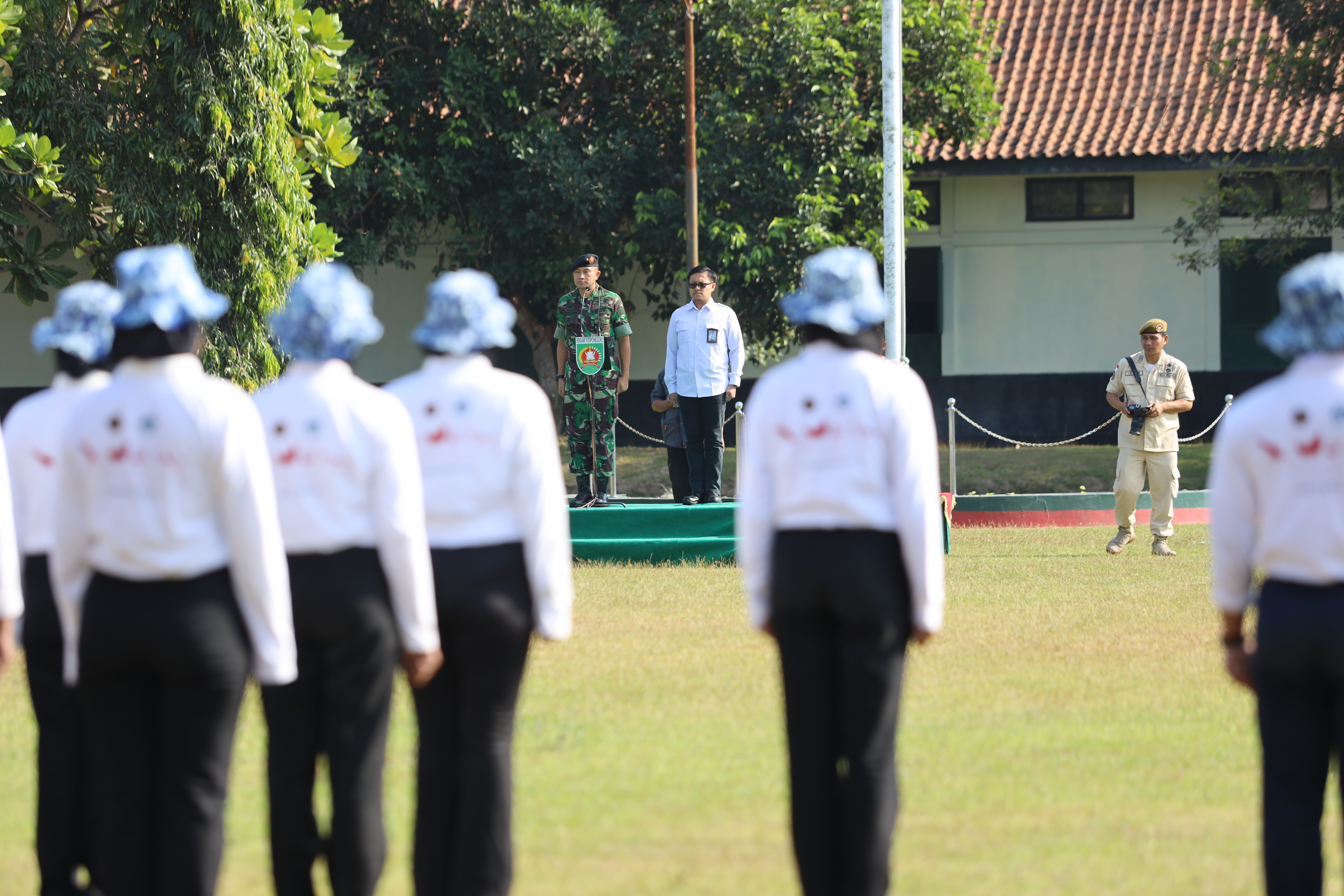 Mayjen Tandyo secara resmi membuka kegiatan Diklat Bela Negara dengan secara simbolis menyematkan tanda peserta kepada perwakilan mahasiswa serta melakukan pengecekan kesiapan peserta bersama dengan Adhrial Refaddin dan pejabat terkait lainnya.