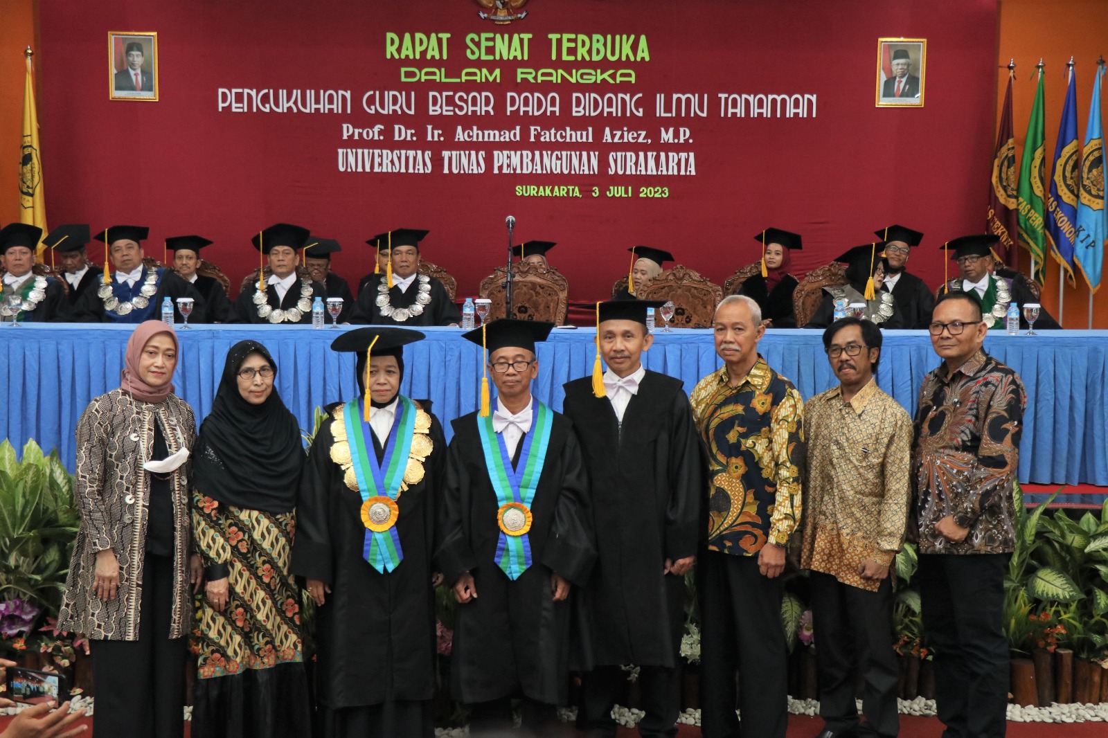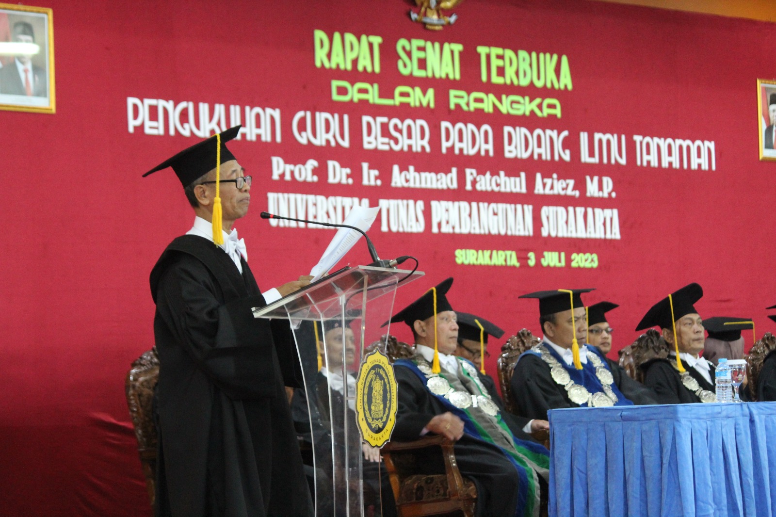 Senin (03/07) Universitas Tunas Pembangunan Surakarta melaksanakan kegiatan pengukuhan Guru Besar pertamanya kepada Prof. Dr. Ir. Achmad Fatchul Aziez, MP. Prof. Aziez menerima SK Guru Besar pada hari Selasa, 06 Juni 2023 yang diterimanya dari Prof. Winarti selaku Rektor UTP Surakarta yang sebelumnya diberikan oleh Bhimo Widyo Handoko, selaku kepala LLDIKTI Wilayah VI Jawa Tengah. Prof. Aziez merupakan Guru Besar pertama UTP Fakutas Pertanian bidang Ilmu Tanaman.