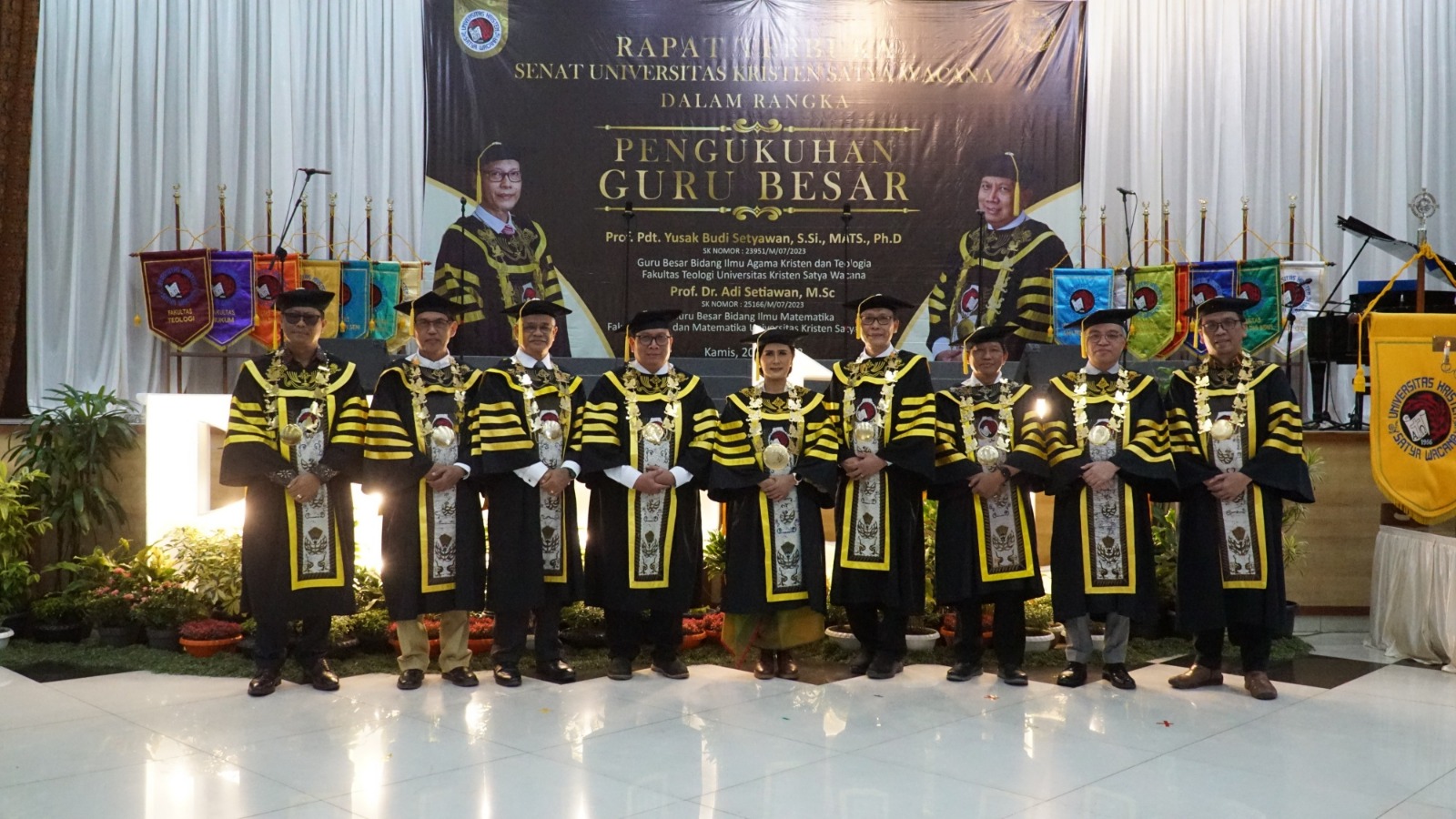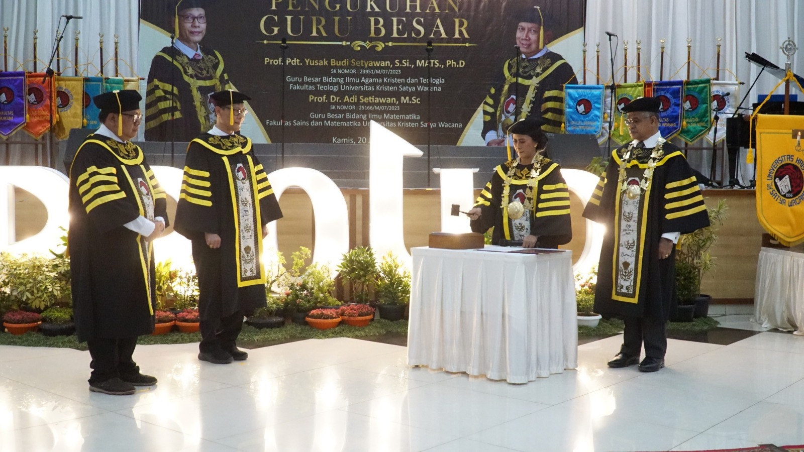 Universitas Kristen Satya Wacana (UKSW) kembali mengukuhkan dua Guru Besar baru dalam gelaran Rapat Senat Terbuka yang diselenggarakan di Balairung Universitas, Kamis (20/07/2023). Keduanya adalah Prof. Pdt. Yusak Budi Setyawan, S.Si., MATS., Ph.D., Guru Besar Bidang Ilmu Agama Kristen dan Teologia Fakultas Teologi, dan Prof. Dr. Drs. Adi Setiawan, M.Sc., Guru Besar Bidang Ilmu Matematika Fakultas Sains dan Matematika (FSM).