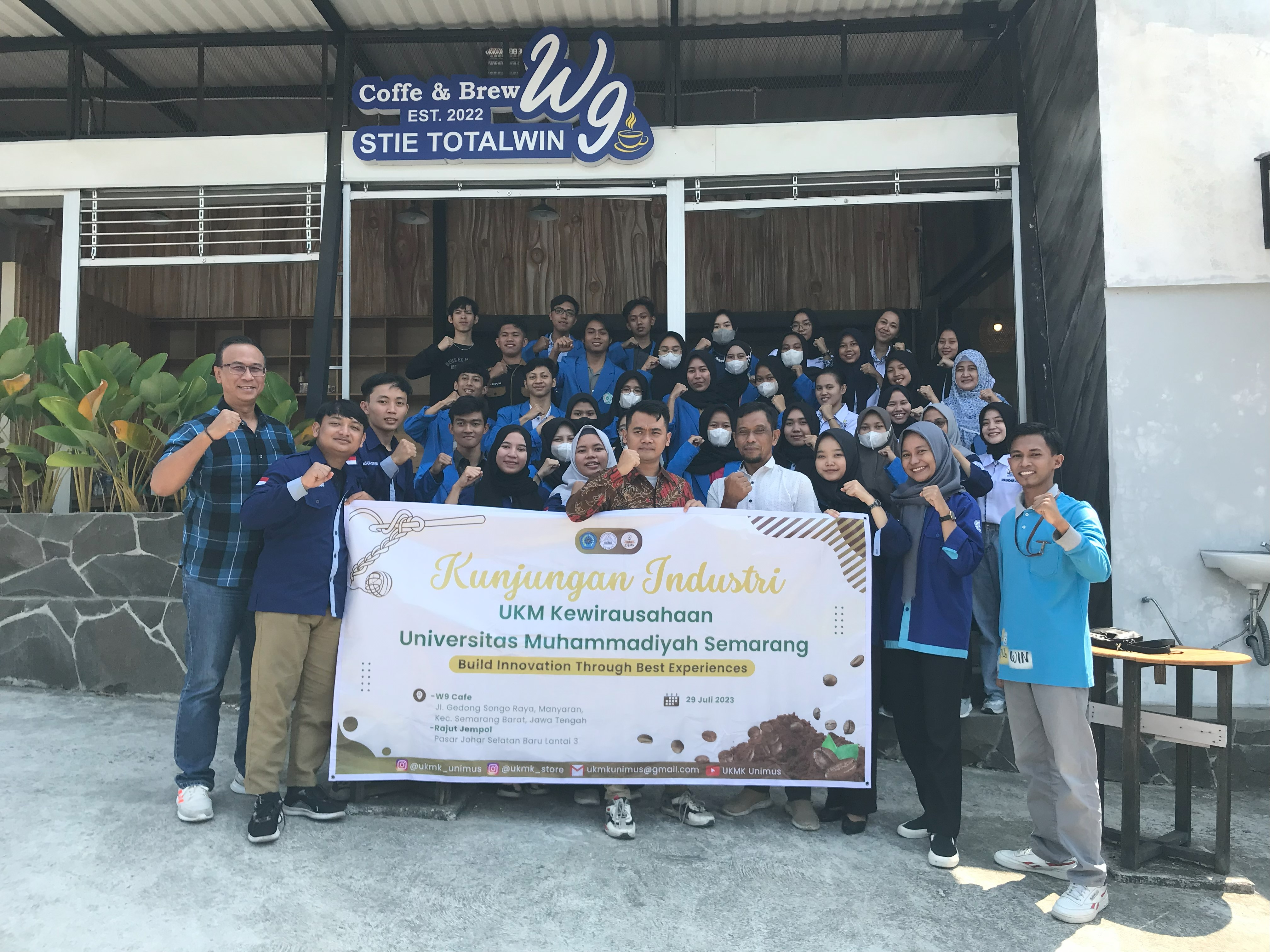 SEMARANG – Bertempat di Kampus Dirgabangsa1 STIE Totalwin Semarang, sebanyak 30 Mahasiswa/i yang tergabung dalam UKM Kewirausahaan Universitas Muhammadiyah Semarang (Unimus) melakukan kegiatan Kunjungan Industri ke W9 Cafe pada Sabtu (29/07).