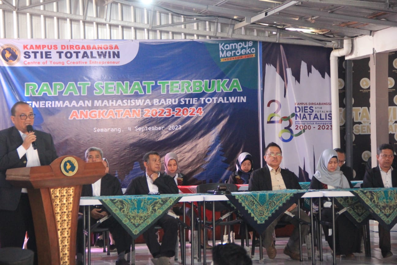 Semarang STIE Totalwin Semarang secara resmi membuka Penerimaan Mahasiswa Baru untuk Tahun Akademik 2023/2024 dalam rapat senat terbuka yang dipimpin oleh Ketua Senat, Dr. Hasan Abdul Rozak, S.H., CN, MM., yang juga menjabat sebagai Ketua STIE Totalwin Semarang. Acara berlangsung pada hari Senin (04/09), di kampus Dirgabangsa2 STIE Totalwin.