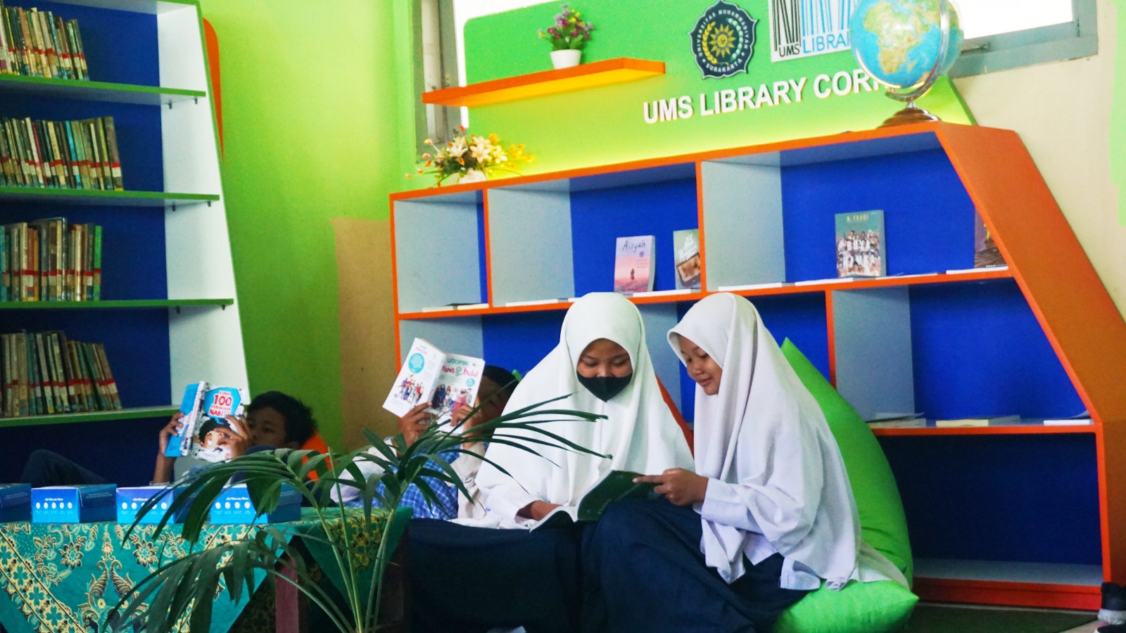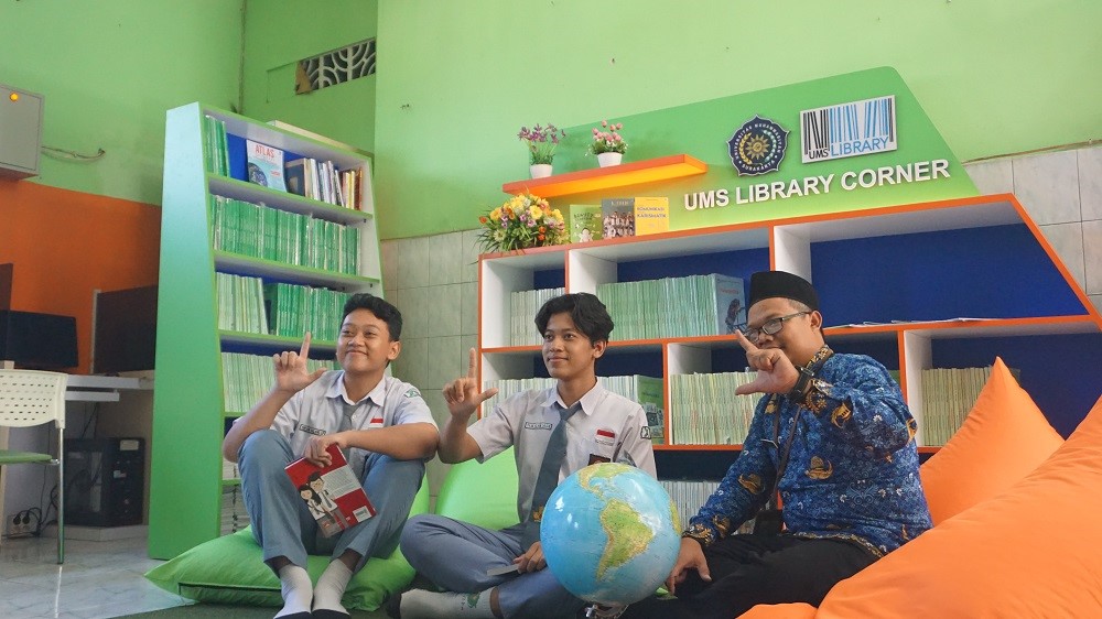 Para siswa SMA Muhammadiyah 1 Surakarta dan SMP Muhammadiyah 7 Bayat Klaten sangat antusias atas hadirnya UMS Library Corner di sekolah mereka, sejak Juli lalu.