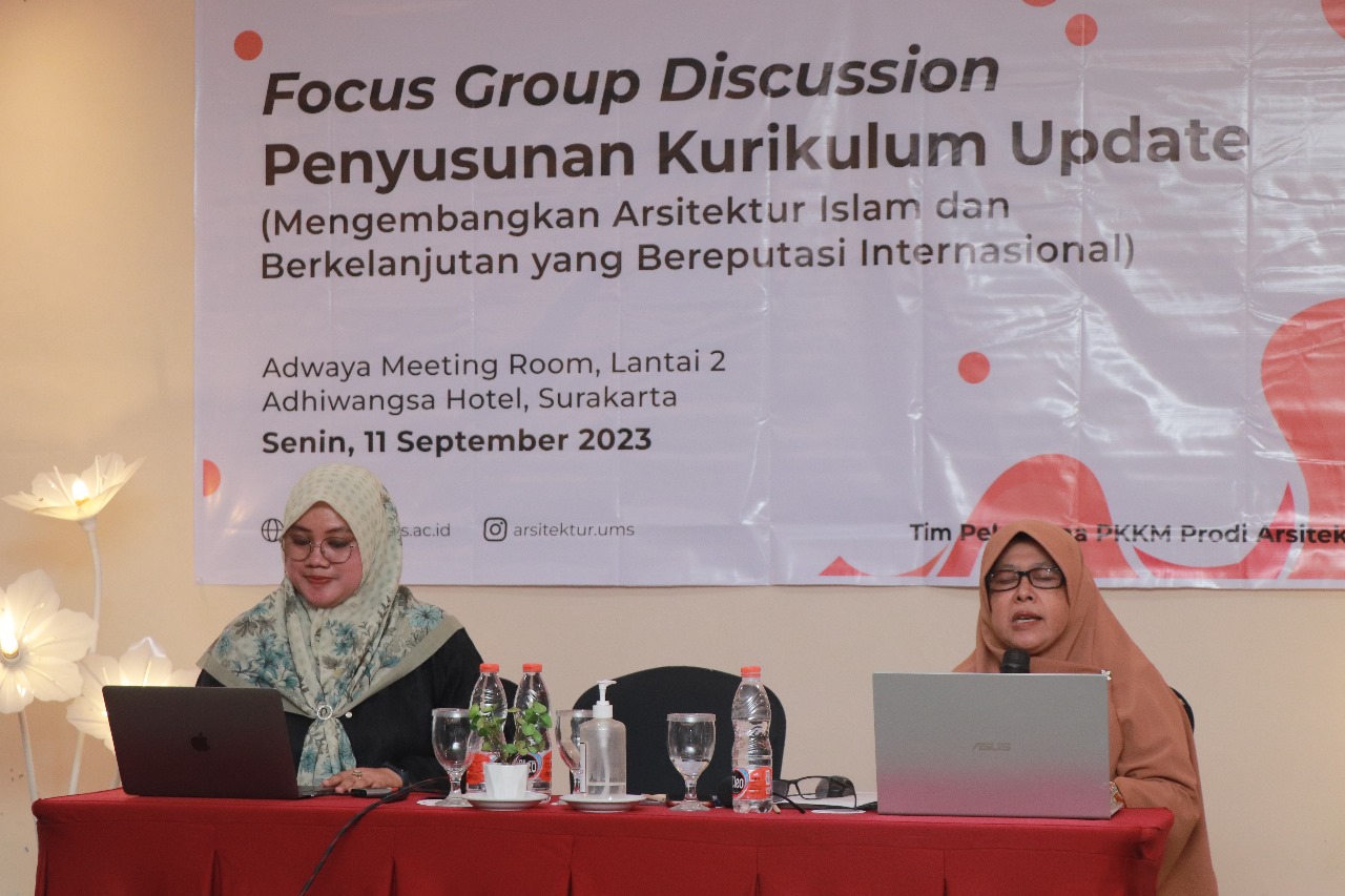 SOLO – Program studi (Prodi) Arsitektur Fakultas Teknik (FT) Universitas Muhammadiyah Surakarta (UMS) menggelar Forum Group Discussion (FGD) Kurikulum Update dalam mengembangkan Arsitektur Islam Berkelanjutan yang Bereputasi Internasional, Senin, (11/9) yang dilaksanakan di Hotel Adhiwangsa, Surakarta.