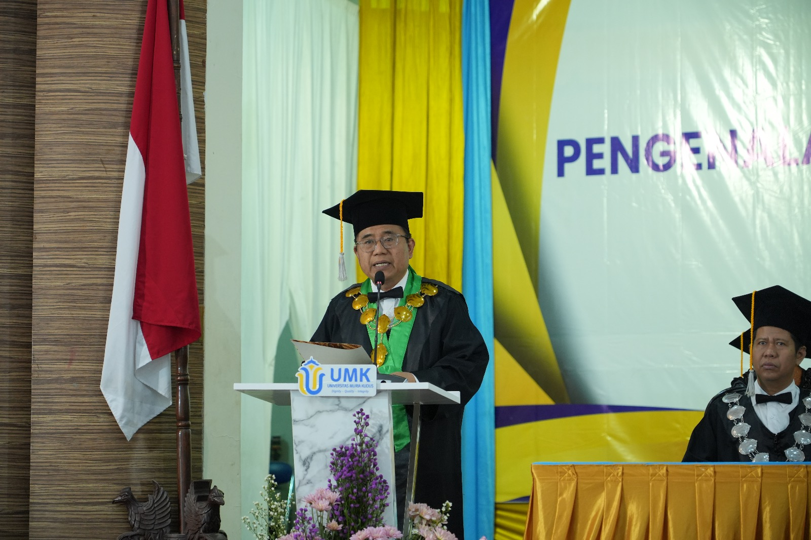 “Sehingga kelak menjadi lulusan yang memiliki kedalaman ilmu, keluhuran akhlak, cinta Tanah Air, dan berdaya saing global. Hal ini selaras dengan semangat yang diusung dalam tagline UMK yaitu dignity, quality, integrity,” tegasnya.