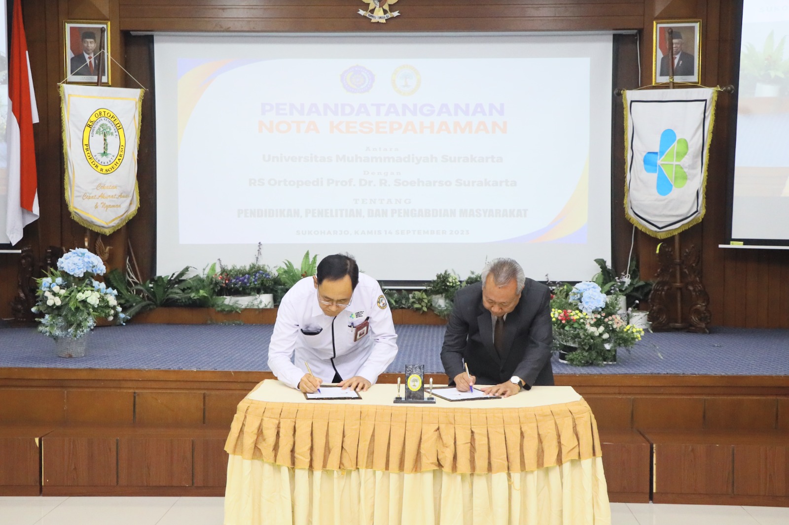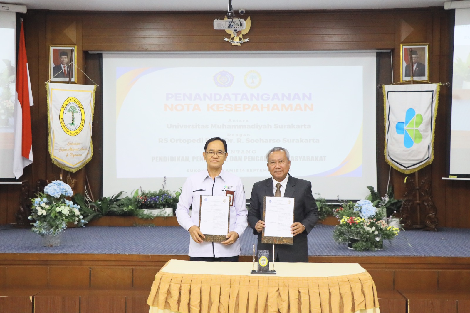 PABELAN – Rumah Sakit Ortopedi (RSO) Prof., Dr.,R., Soeharso Surakarta mengadakan kerjasama (MoU) dengan Universitas Muhammadiyah Surakarta (UMS) guna memperkuat pengembangan bidang Pendidikan, Penelitian, dan Pengabdian Masyarakat, Kamis, (14/9).