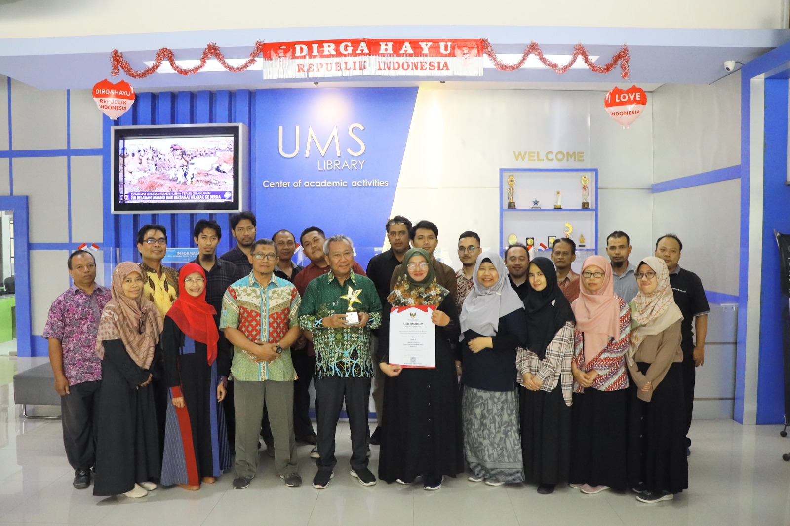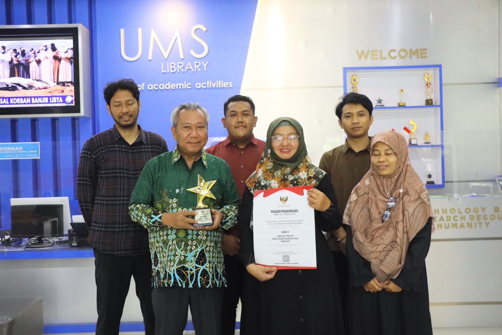 PABELAN – Rektor Universitas Muhammadiyah Surakarta (UMS), Prof., Dr., Sofyan Anif, M.Si., berkunjung ke Perpustakaan UMS pada Sabtu (16/9), dalam rangka silaturahmi sekaligus memberi apresiasi pada Tim Perpustakaan UMS yang telah meraih Juara 3 dalam Lomba Best Practices Perpustakaan Perguruan Tinggi Nasional 2023.