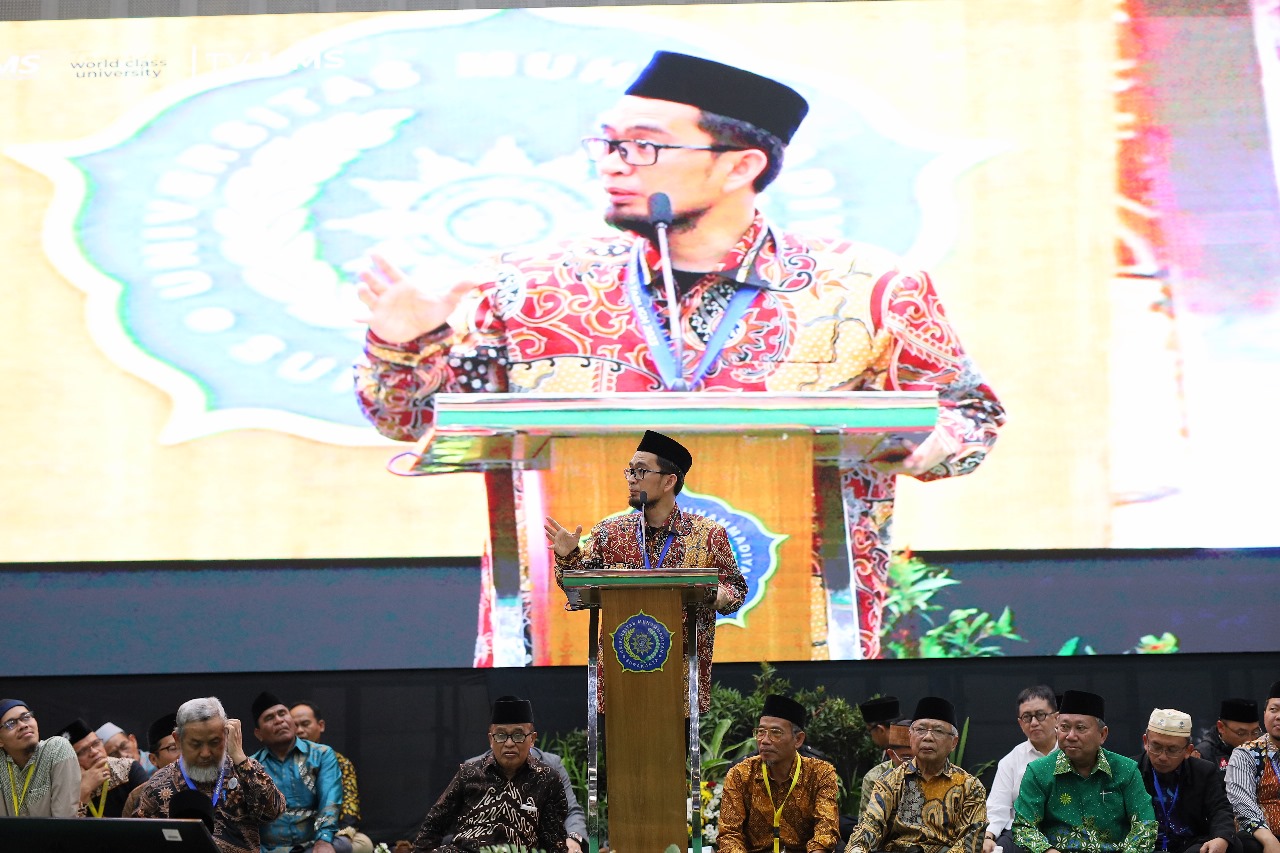 “Saya ke tiga kalinya masuk ke gedung ini, pertama di tahun 2022 untuk memberikan tausiyah pra-Muktamar Muhammadiyah dan Aisyiyah ke-48. Ke dua saat Muktamar saya menjadi saksi sebagai penggembira, dan ini merupakan kali ketiga berada disini,” ungkap UAH, panggilan a krab Ustadz Adi Hidayat.