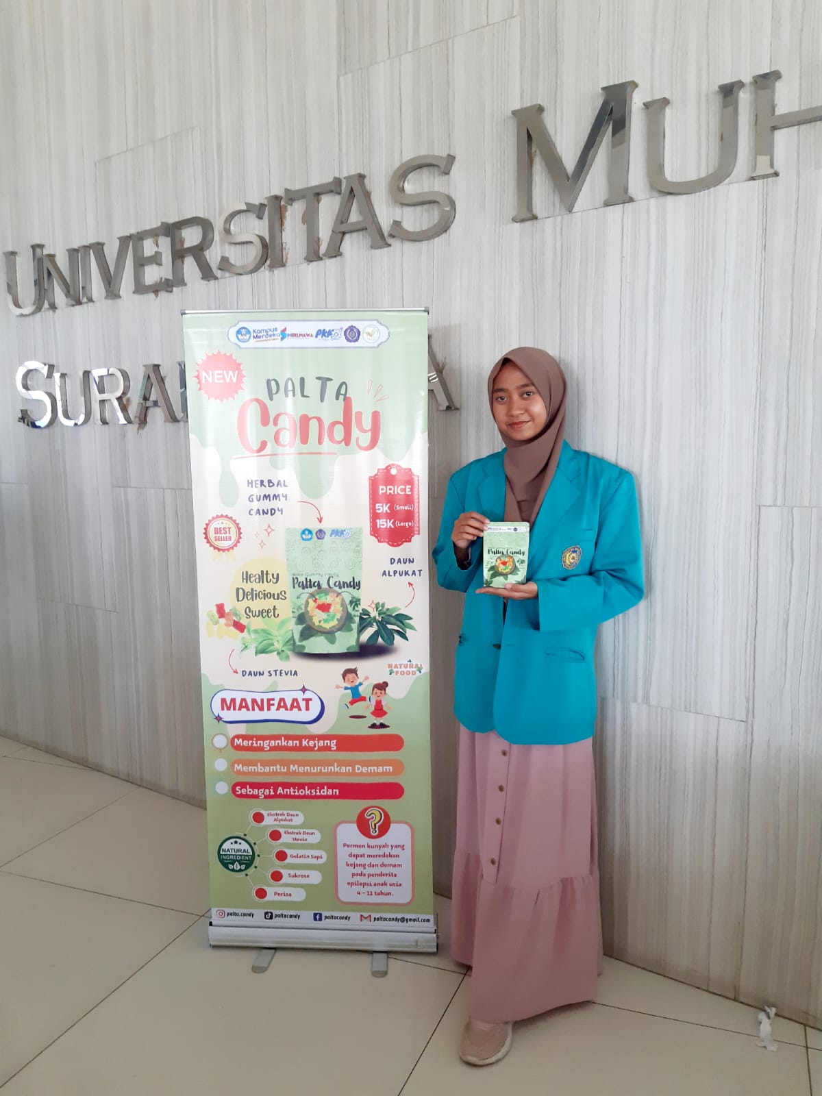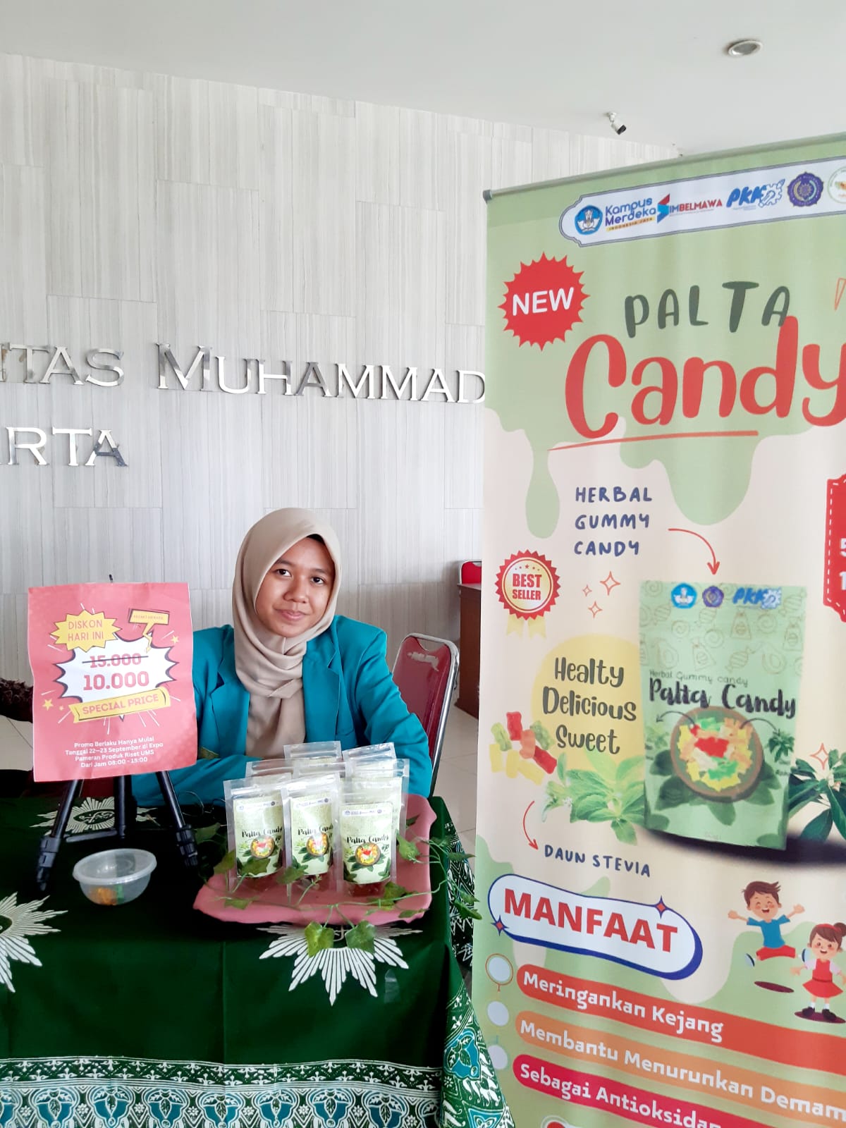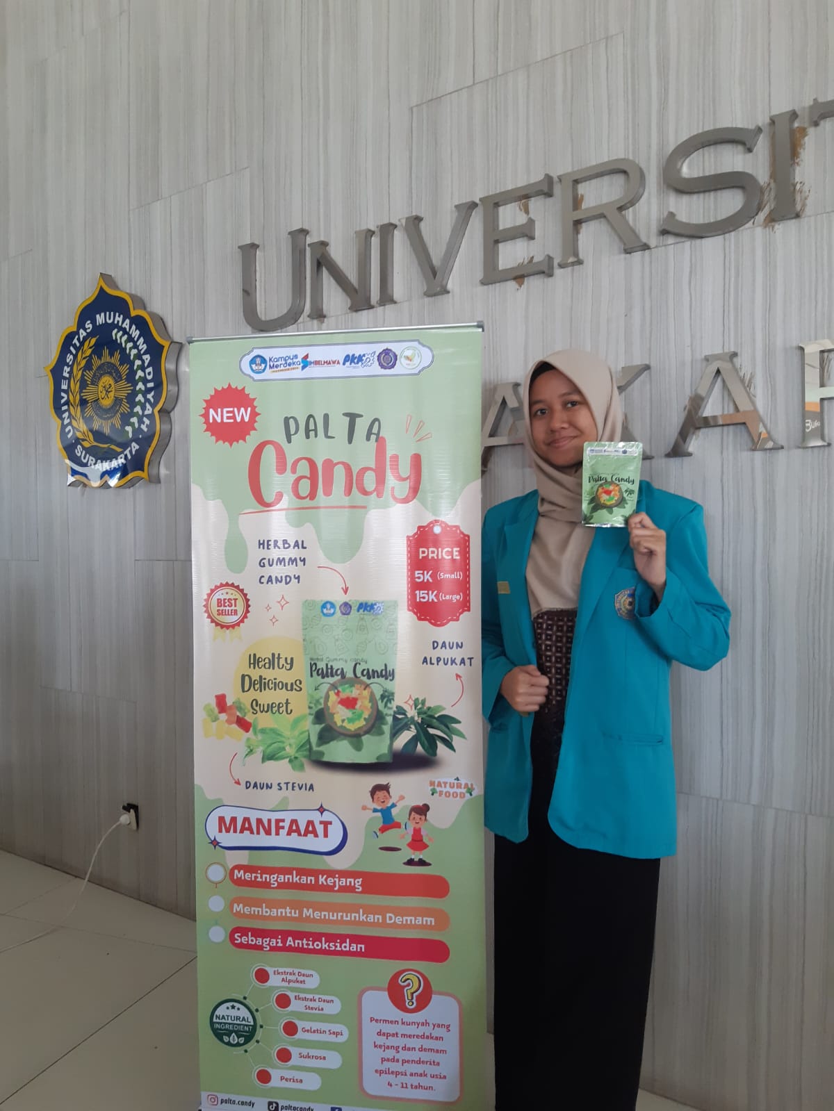 SOLO – TIM Kreativitas Mahasiswa Kewairausahaan (PKM-K) Universitas Muhammadiyah Surakarta (UMS) berhasil menciptakan produk gummy candy herbal yang lebih aman untuk dikonsumsi dan menarik bagi anak anak, yang disebut Palta Candy.