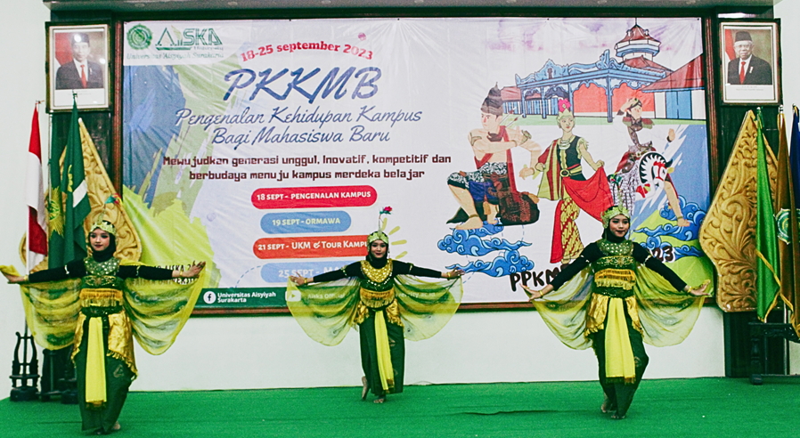 PKKMB yang digelar pada Senin (18/09/2023) tersebut diawali dengan penampilan dari Unit Kegiatan Mahasiswa (UKM) Tari AISKA , tarian yang disajikan adalah “Tari Merak Ngigel” dimana memiliki makna suatu keindahan yang menjadi kebanggaan masyarakat seperti harapan dari Universitas ‘Aisyiyah Surakarta ingin menjadikan lulusan yang membanggakan dan berdaya guna bagi masyarakat. PKKMB digelar secara Luring di Auditorium Siti Baroroh Baried, Komplek Kampus 1 AISKA. Luar biasa tahun 2023 Peserta PKKMB terdiri dari berbagai mahasiswa dari 34 provinsi di Indonesia. Semoga menjadi tahun yang semakin meningkatkan jumlah dan kualitas mahasiswa baru di Universitas ‘Aisyiyah Surakarta.