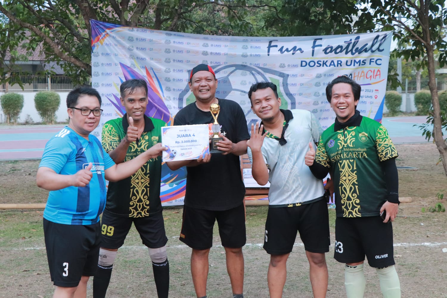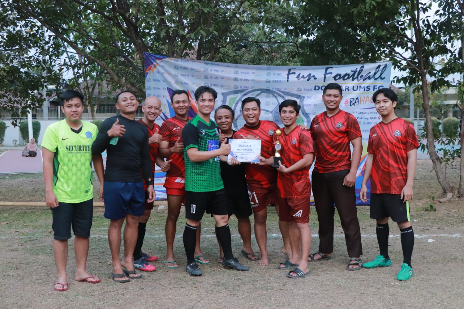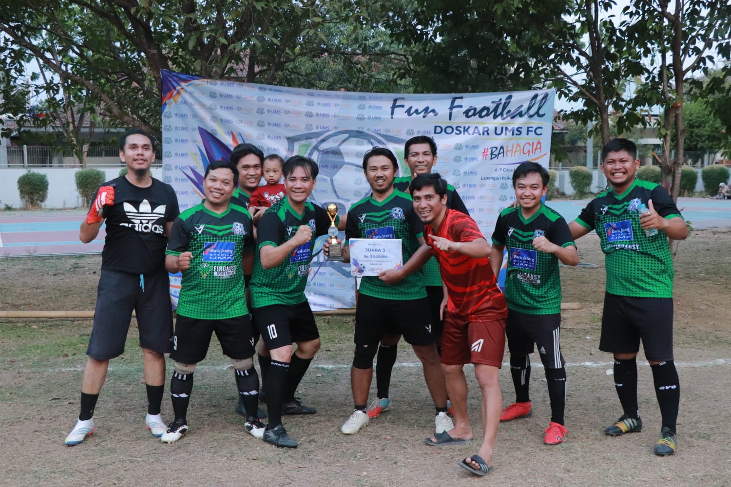 PABELAN- Dosen Karyawan Football Club (Doskar FC) Universitas Muhammadiyah Surakarta (UMS) menggelar acara Mini Turnamen Sepak Bola di Lapangan Sepak Bola Pascasarjana UMS, Sabtu, (7/10).