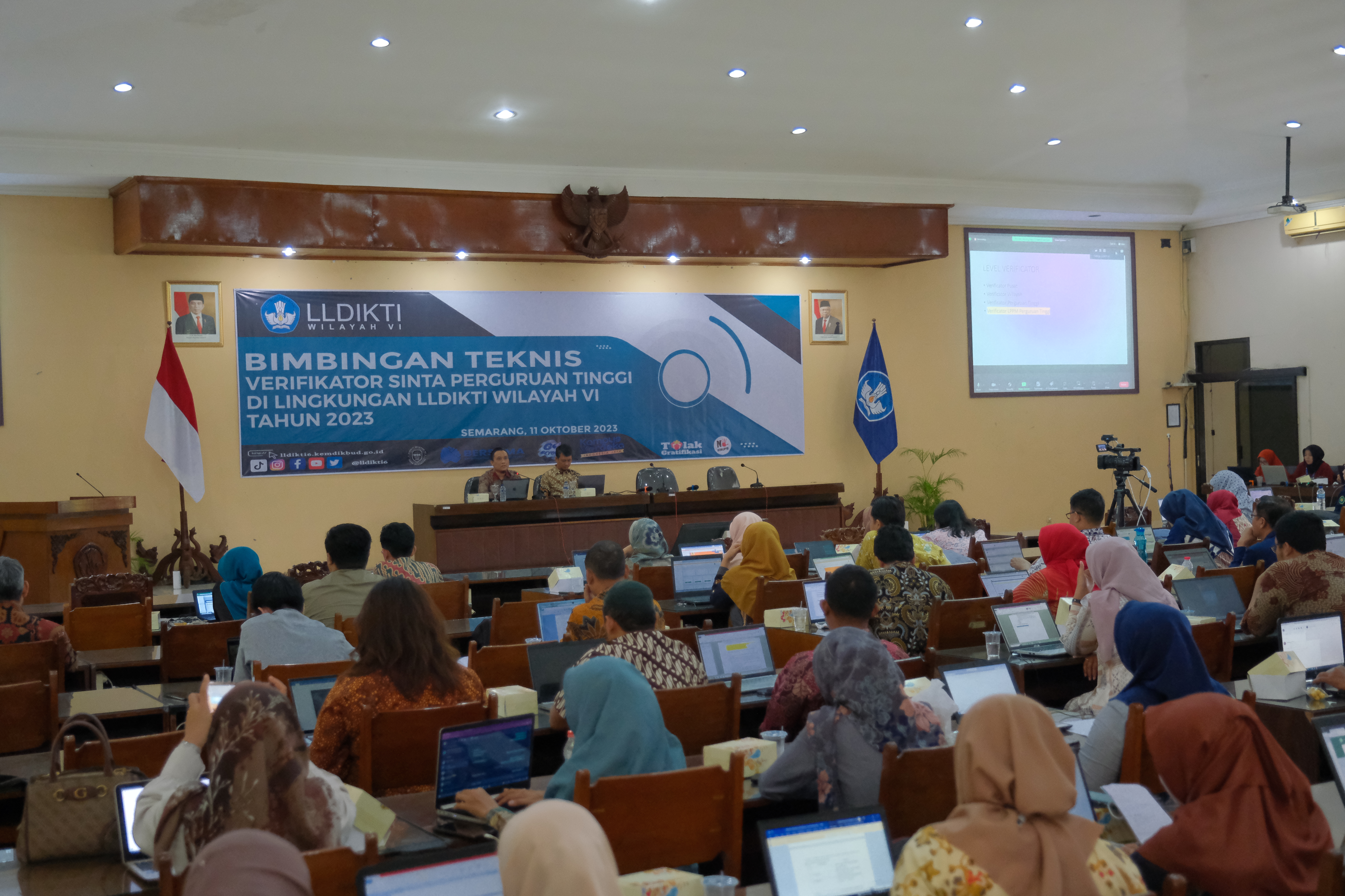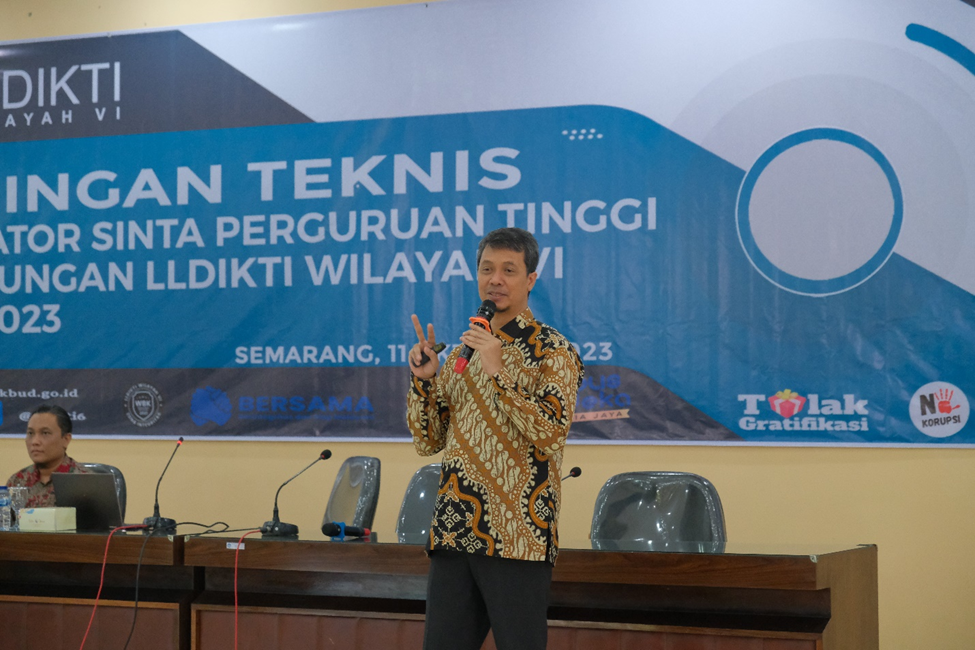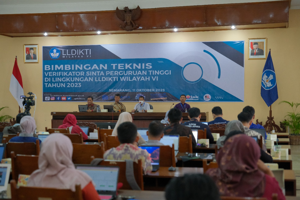 Semarang – LLDIKTI Wilayah VI kembali menggelar kegiatan penting yakni Bimbingan Teknis bagi Verifikator SINTA (Science and Technology Index) pada Rabu (11/10) bertempat di Gedung A Kantor LLDIKTI Wilayah VI Jawa Tengah yang dihadiri oleh para dosen PTS di wilayah LLDIKTI VI Jawa Tengah secara Luring dan Zoom Meeting. Acara ini merupakan respon atas beberapa aspek yang mendesak. Pertama, kesempatan untuk menjalin silaturahmi antar verifikator yang terakhir kali terjadi pada tahun 2021 di Pekalongan. Kedua, sejak diluncurkannya SINTA versi tiga, belum ada upaya penyelenggaraan fasilitasi serupa. Oleh karena itu, muncul kebutuhan mendesak untuk memperbarui pemahaman verifikator tentang perkembangan SINTA yang terkini dan bagaimana sistem ini dapat mendukung para dosen dalam kegiatan riset. Terutama, SINTA telah terintegrasi dengan SISTER (Sistem Informasi Sumberdaya Terintegrasi), sehingga kendala yang mungkin timbul perlu diatasi.