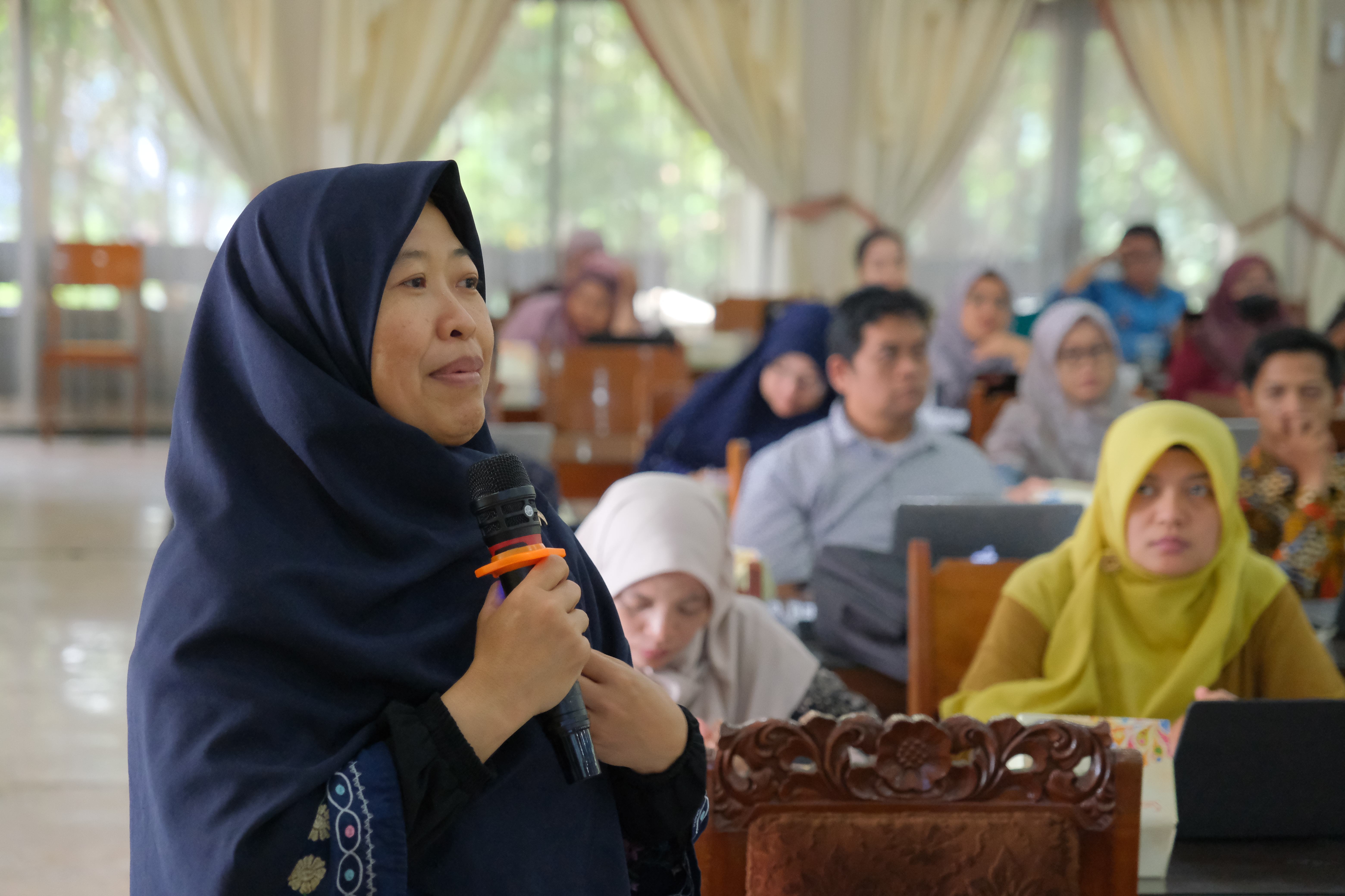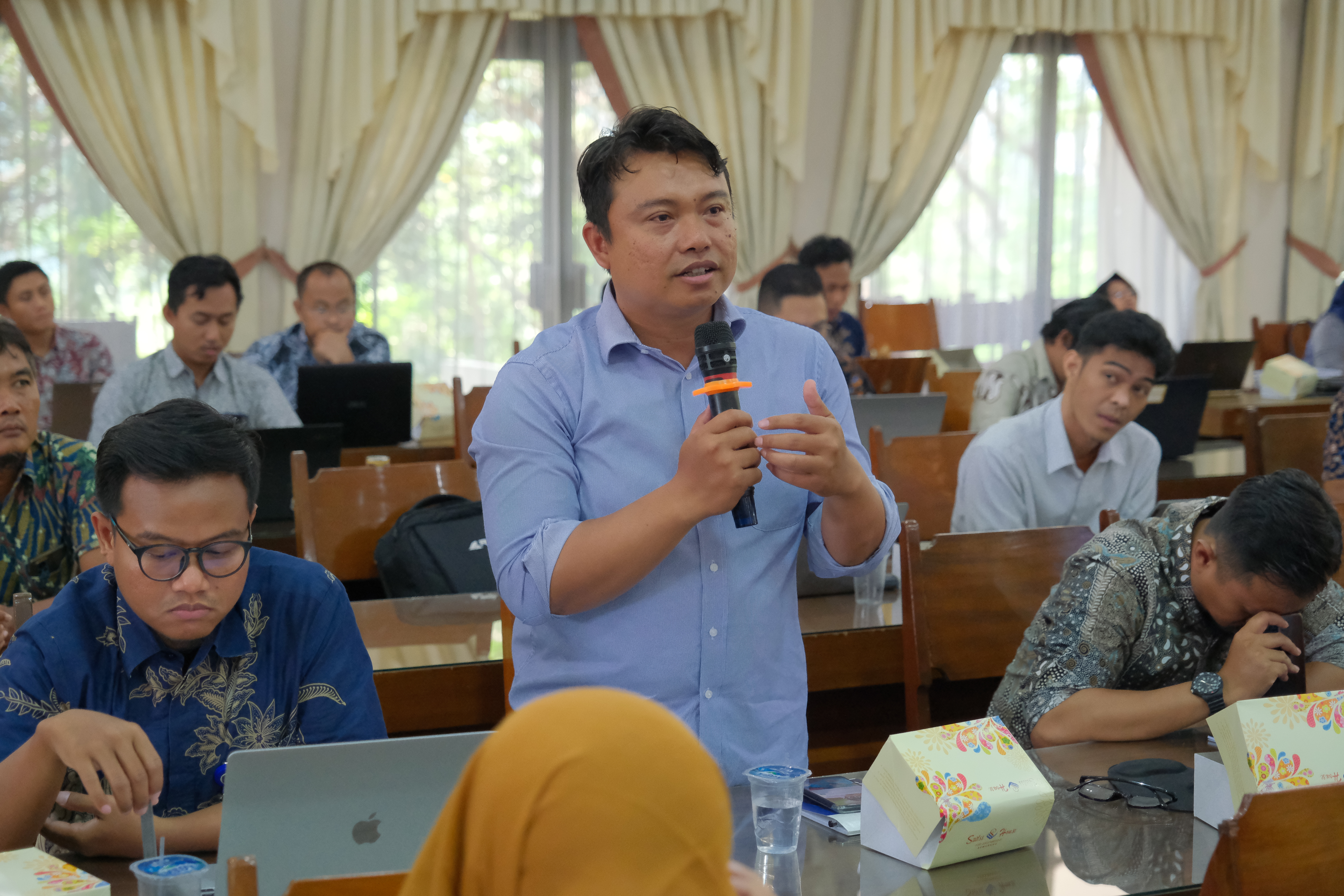 Lebih lanjut, Sam Farisa Chaerul Haviana berbagi aspek teknis verifikasi SINTA dan menjawab pertanyaan dari peserta. Beliau menekankan peran vital verifikator dalam menjaga akurasi data dan memfasilitasi penambahan produk dan prototipe ke dalam sistem.