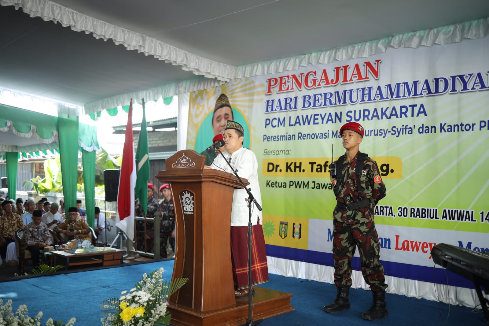 SOLO – Ribuan Jamaah Hadir Pada Tablig Akbar Hari Bermuhammadiyah bersama KH. Tafsir, M.Ag., Ketua Pimpinan Wilayah Muhammadiyah (PWM) Jawa Tengah, sekaligus  peresmian renovasi Masjid Nurusy-syifa’ dan Kantor Pimpinan Ranting Muhammadiyah (PRM) serta Pimpinan Ranting Aisyiyah (PRA) Pajang Utara, Ahad (15/10) yang diselenggarakan di halaman Masjid Nurusy-syifa’,  Laweyan, Surakarta.
