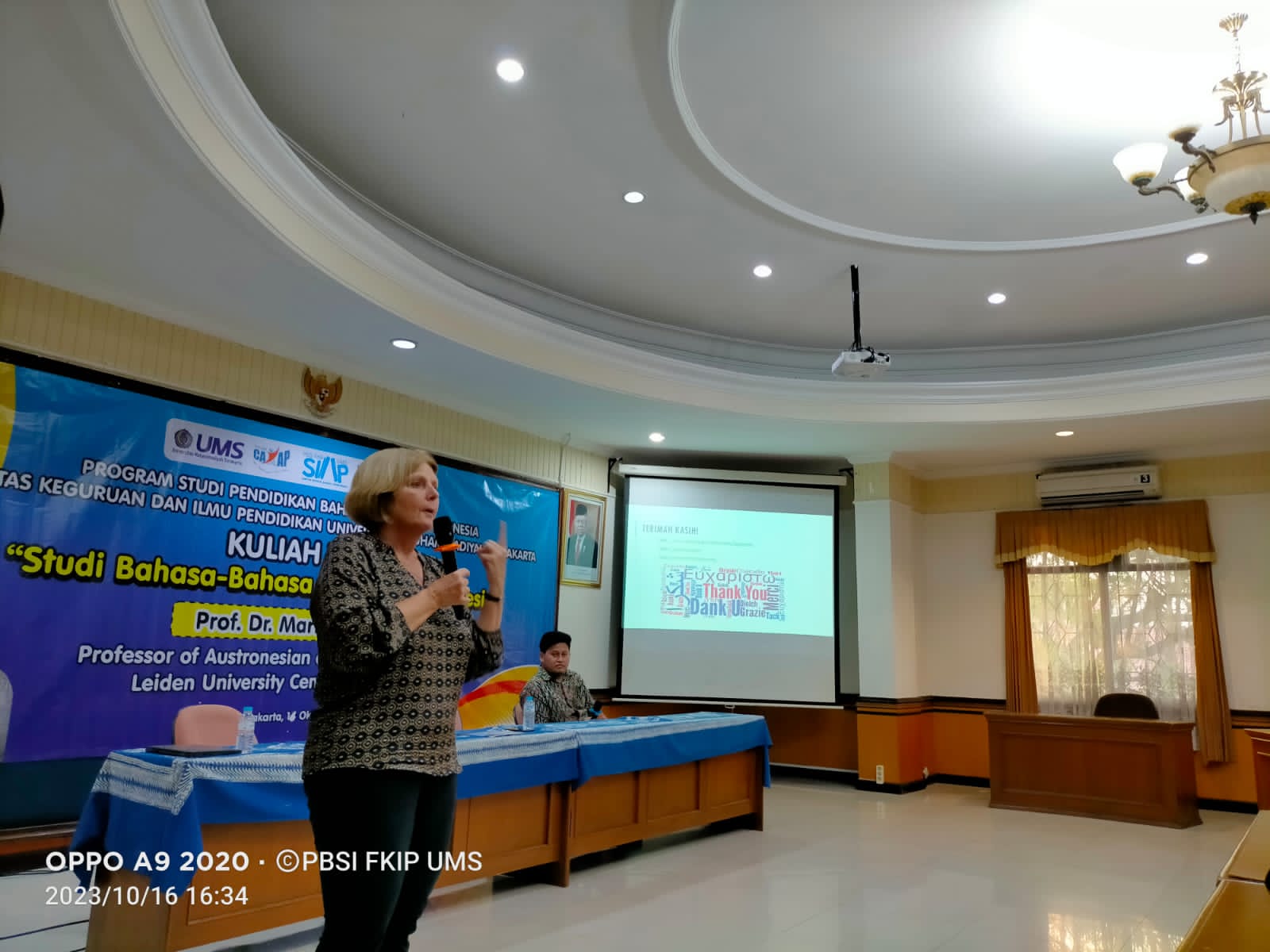 SOLO- Dalam sebuah kuliah tamu yang digelar di Universitas Muhammadiyah Surakarta (UMS), Prof., Dr., Marian Klamer, seorang ahli linguistik terkemuka dari Universitas Leiden, Belanda memberikan paparan yang mendalam mengenai studi bahasa daerah di Indonesia, pada Sabtu (14/10).