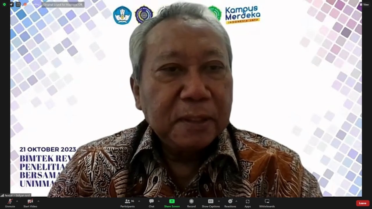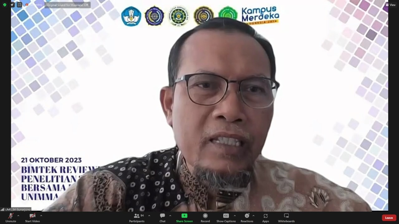 SUKOHARJO- Universitas Muhammadiyah Surakarta (UMS) dipercaya menjadi penyelenggara Bimbingan Teknis (Bimtek) untuk para reviewer penelitian di perguruan tinggi. Kegiatan yang dilaksanakan pada Platfrom Zoom tersebut dihadiri oleh reviewer dari beberapa perguruan tinggi seperti Universitas Muhammadiyah Magelang (UNIMMA), Universitas Muhammadiyah Surakarta (UMS), Universitas Ahmad Dahlan (UAD), dan Universitas ‘Aisyiyah Yogyakarta (UNISA), Sabtu (21/10).