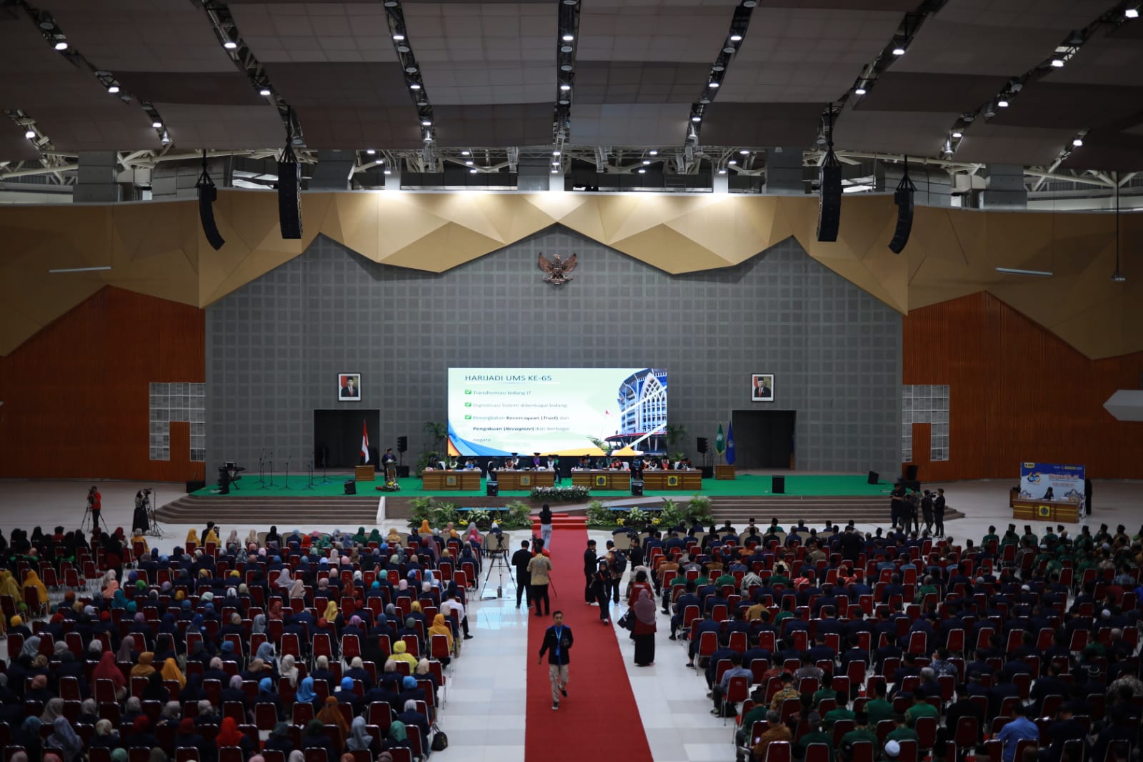SOLO – Universitas Muhammadiyah Surakarta (UMS) Menggelar Upacara Harijadi Ke-65 di Gedung Edutorium K.H., Ahmad Dahlan, Selasa, (24/10).