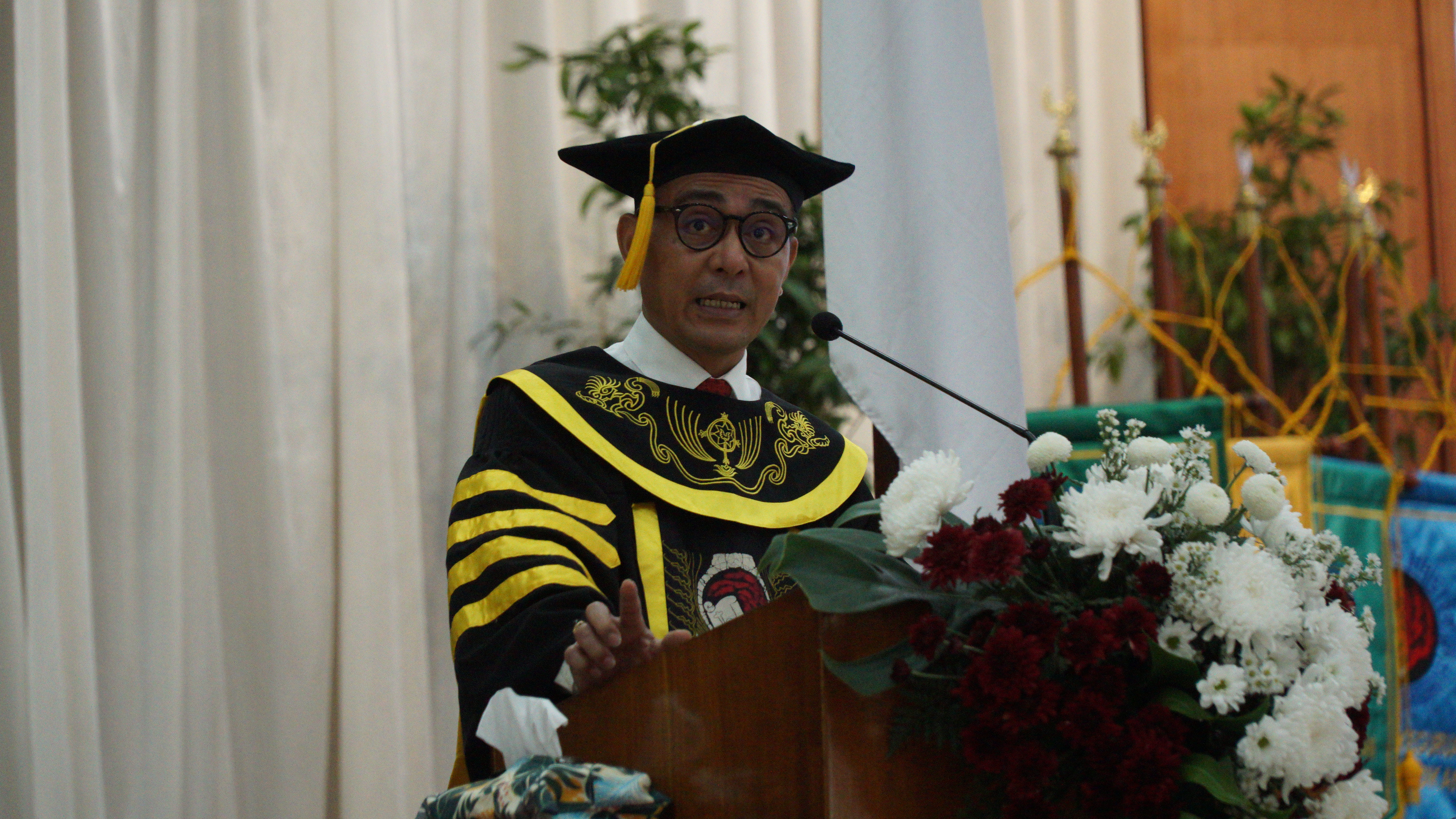 Rektor Intiyas mengucapkan syukur kepada Tuhan atas anugerah tiga talenta Guru Besar yang diperoleh UKSW. Disebutkannya, kehadiran tiga Guru Besar yang baru dapat menjadi energi bagi UKSW untuk bertumbuh dan berdaya dampak menuju World Class University.
